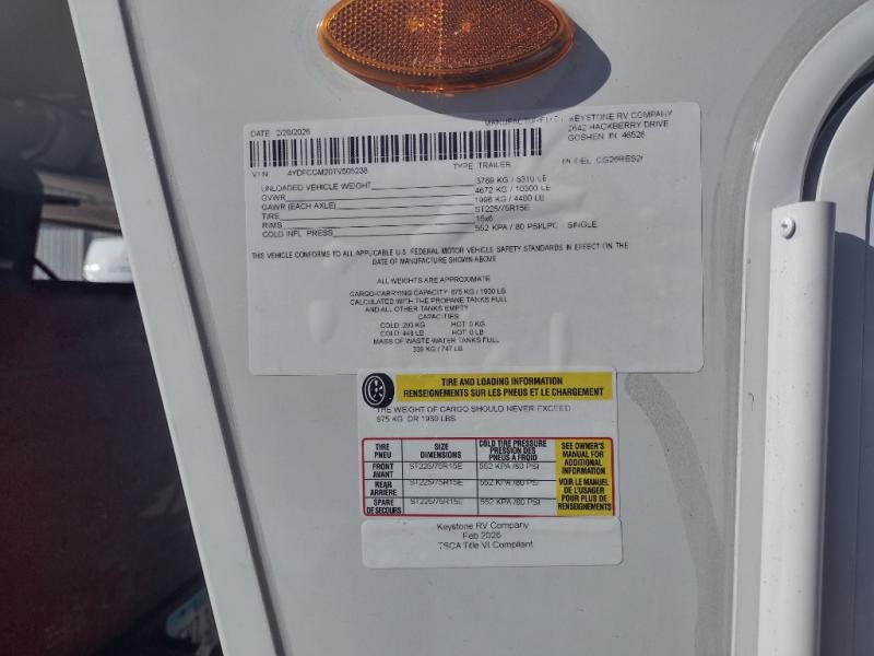 New 2026 Keystone RV Cougar Half-Ton 26RES Fifth Wheel
