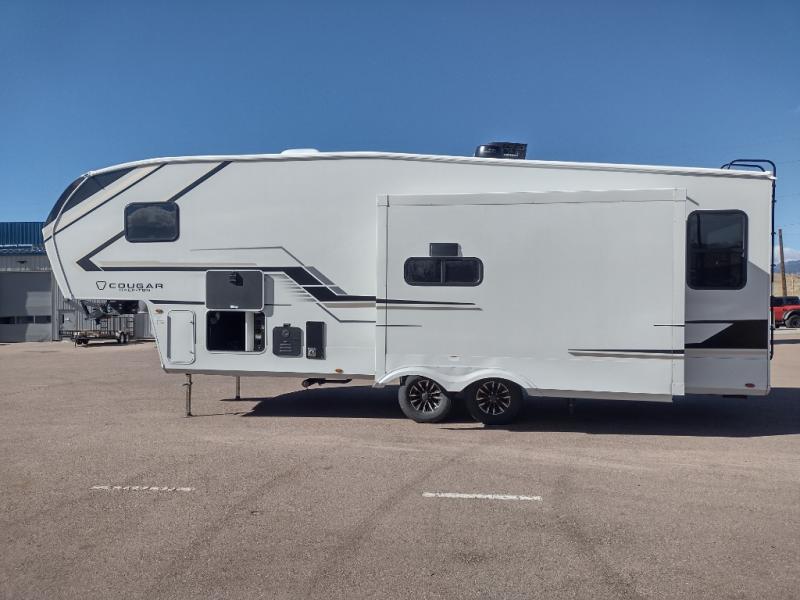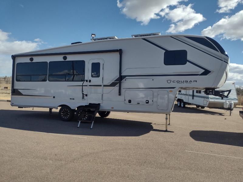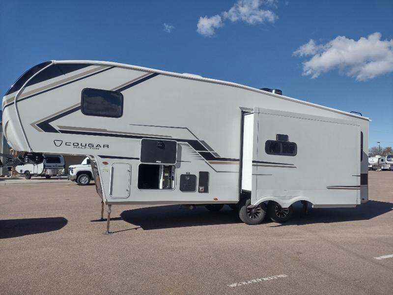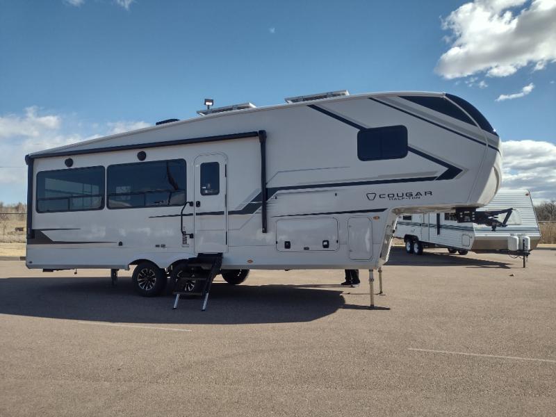 The Keystone Cougar Half-Ton fifth wheel and travel trailers are known as one of America's favorites for a reason! Some of those reasons are the exclusive features that come from Keystone, like the Winegard Air 360+ omni-directional rooftop antenna, the in-floor heating ducts, and the HyperCore composite wall construction with Vixen Fibrogloss high-gloss finish. The Cougar Half-Ton has a Climate Guard protection package with heat-deflecting white sidewalls, two roof attic vents, PEX plumbing and more to enjoy four season camping. Inside, you'll love the dimmable lighting, night roller shades throughout, shower skylight, and bedside USB outlets to keep your electronics charged.