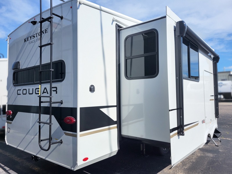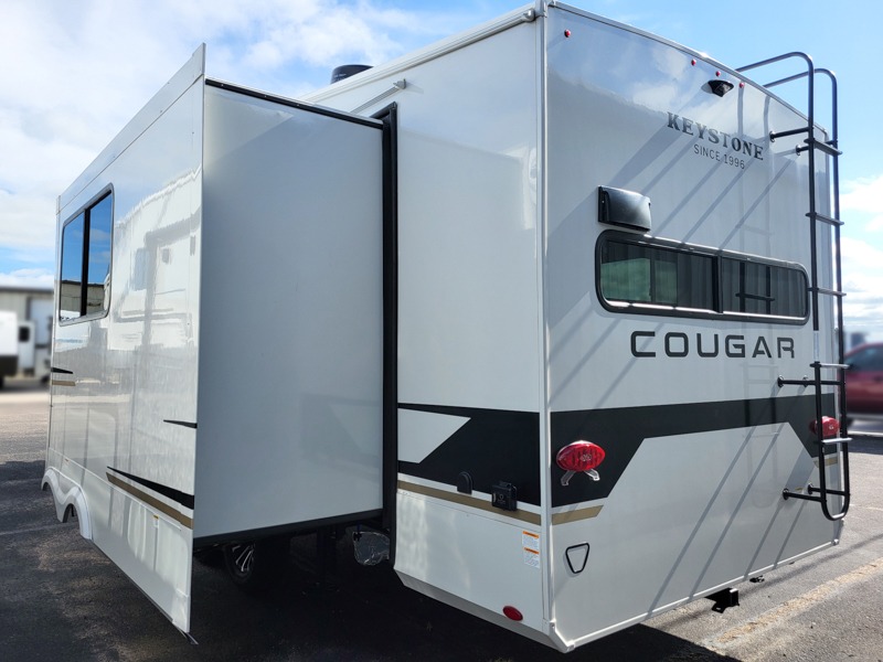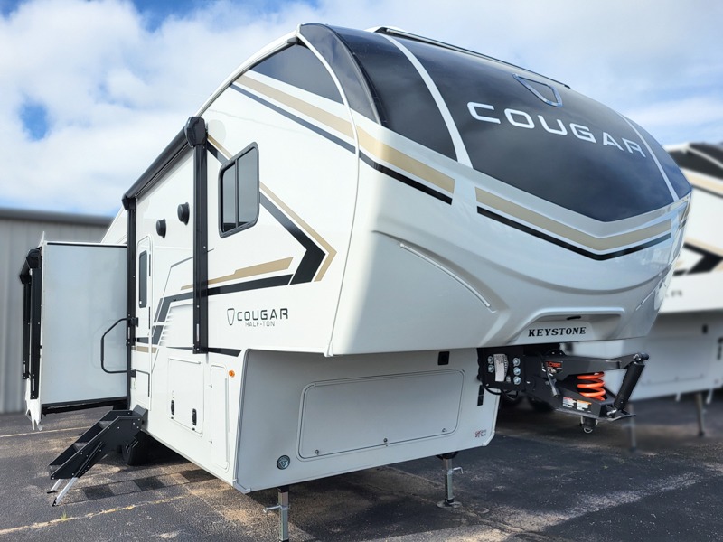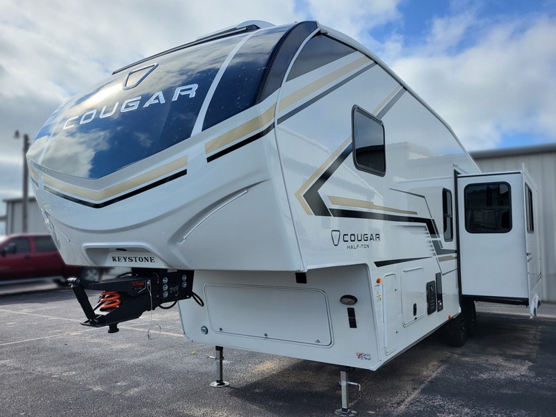 The Keystone Cougar Half-Ton fifth wheel and travel trailers are known as one of America's favorites for a reason! Some of those reasons are the exclusive features that come from Keystone, like the Winegard Air 360+ omni-directional rooftop antenna, the in-floor heating ducts, and the HyperCore composite wall construction with Vixen Fibrogloss high-gloss finish. The Cougar Half-Ton has a Climate Guard protection package with heat-deflecting white sidewalls, two roof attic vents, PEX plumbing and more to enjoy four season camping. Inside, you'll love the dimmable lighting, night roller shades throughout, shower skylight, and bedside USB outlets to keep your electronics charged.