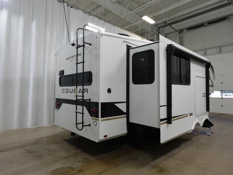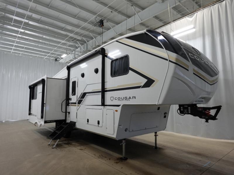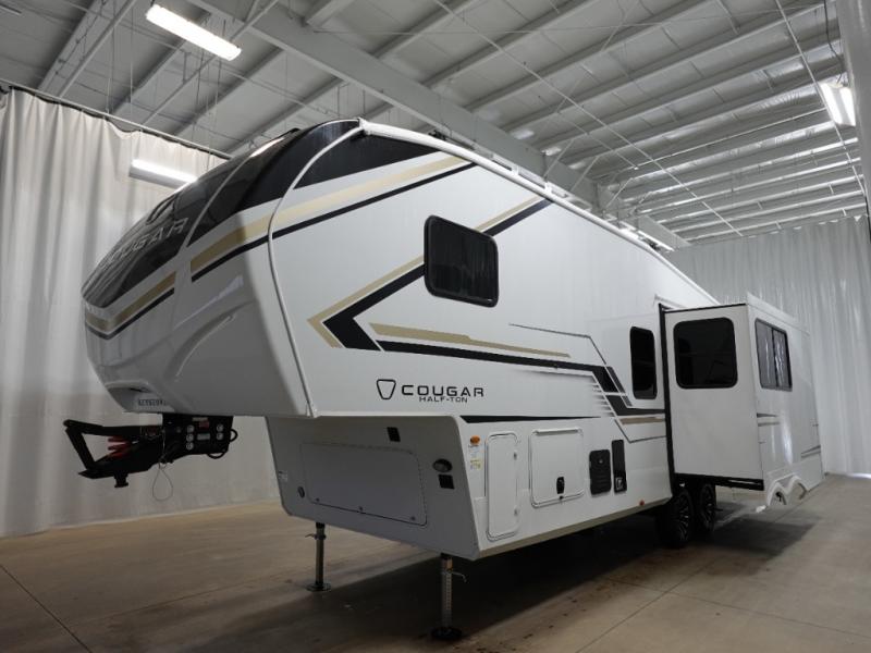 The Keystone Cougar Half-Ton fifth wheel and travel trailers are known as one of America's favorites for a reason! Some of those reasons are the exclusive features that come from Keystone, like the Winegard Air 360+ omni-directional rooftop antenna, the in-floor heating ducts, and the HyperCore composite wall construction with Vixen Fibrogloss high-gloss finish. The Cougar Half-Ton has a Climate Guard protection package with heat-deflecting white sidewalls, two roof attic vents, PEX plumbing and more to enjoy four season camping. Inside, you'll love the dimmable lighting, night roller shades throughout, shower skylight, and bedside USB outlets to keep your electronics charged.