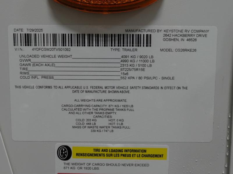 New 2026 Keystone RV Cougar Half-Ton 26RKE Fifth Wheel