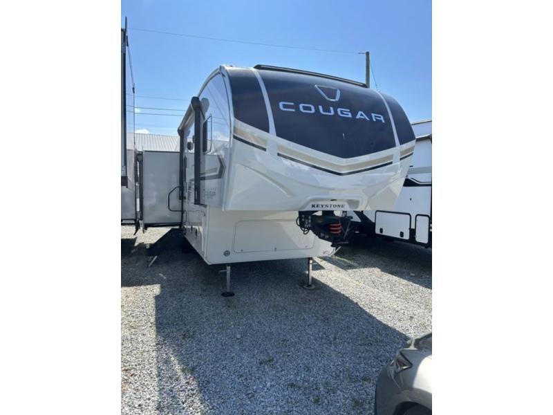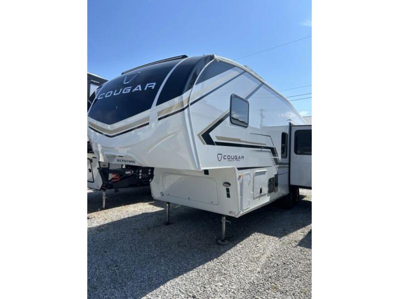 The Keystone Cougar Half-Ton fifth wheel and travel trailers are known as one of America's favorites for a reason! Some of those reasons are the exclusive features that come from Keystone, like the Winegard Air 360+ omni-directional rooftop antenna, the in-floor heating ducts, and the HyperCore composite wall construction with Vixen Fibrogloss high-gloss finish. The Cougar Half-Ton has a Climate Guard protection package with heat-deflecting white sidewalls, two roof attic vents, PEX plumbing and more to enjoy four season camping. Inside, you'll love the dimmable lighting, night roller shades throughout, shower skylight, and bedside USB outlets to keep your electronics charged.