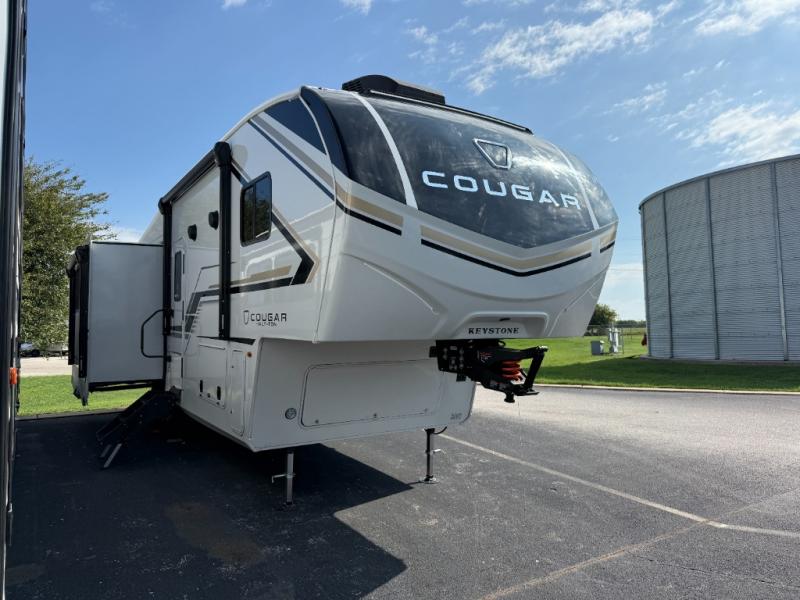 The Keystone Cougar Half-Ton fifth wheel and travel trailers are known as one of America's favorites for a reason! Some of those reasons are the exclusive features that come from Keystone, like the Winegard Air 360+ omni-directional rooftop antenna, the in-floor heating ducts, and the HyperCore composite wall construction with Vixen Fibrogloss high-gloss finish. The Cougar Half-Ton has a Climate Guard protection package with heat-deflecting white sidewalls, two roof attic vents, PEX plumbing and more to enjoy four season camping. Inside, you'll love the dimmable lighting, night roller shades throughout, shower skylight, and bedside USB outlets to keep your electronics charged.