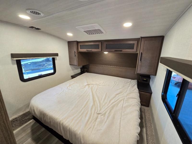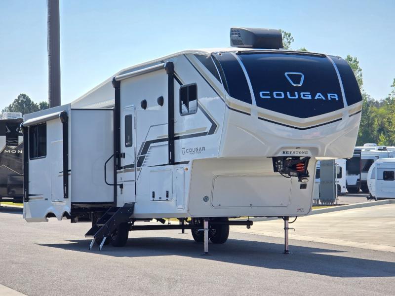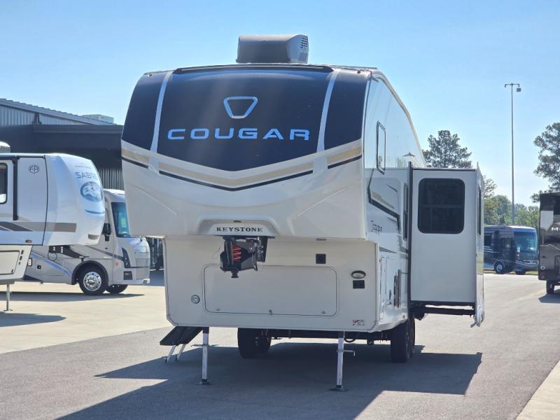 The Keystone Cougar Half-Ton fifth wheel and travel trailers are known as one of America's favorites for a reason! Some of those reasons are the exclusive features that come from Keystone, like the Winegard Air 360+ omni-directional rooftop antenna, the in-floor heating ducts, and the HyperCore composite wall construction with Vixen Fibrogloss high-gloss finish. The Cougar Half-Ton has a Climate Guard protection package with heat-deflecting white sidewalls, two roof attic vents, PEX plumbing and more to enjoy four season camping. Inside, you'll love the dimmable lighting, night roller shades throughout, shower skylight, and bedside USB outlets to keep your electronics charged.