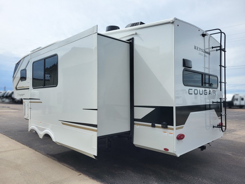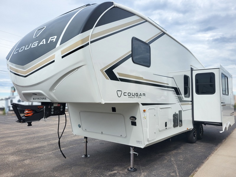 The Keystone Cougar Half-Ton fifth wheel and travel trailers are known as one of America's favorites for a reason! Some of those reasons are the exclusive features that come from Keystone, like the Winegard Air 360+ omni-directional rooftop antenna, the in-floor heating ducts, and the HyperCore composite wall construction with Vixen Fibrogloss high-gloss finish. The Cougar Half-Ton has a Climate Guard protection package with heat-deflecting white sidewalls, two roof attic vents, PEX plumbing and more to enjoy four season camping. Inside, you'll love the dimmable lighting, night roller shades throughout, shower skylight, and bedside USB outlets to keep your electronics charged.