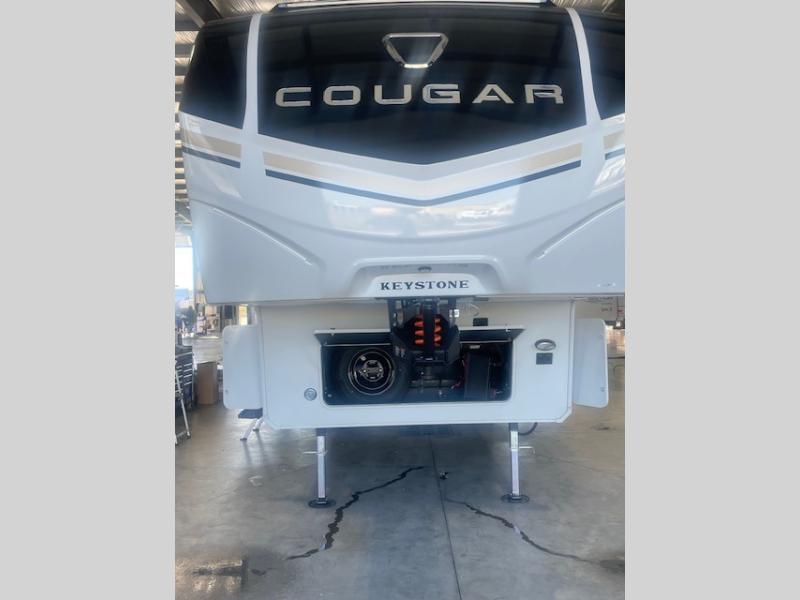 The Keystone Cougar Half-Ton fifth wheel and travel trailers are known as one of America's favorites for a reason! Some of those reasons are the exclusive features that come from Keystone, like the Winegard Air 360+ omni-directional rooftop antenna, the in-floor heating ducts, and the HyperCore composite wall construction with Vixen Fibrogloss high-gloss finish. The Cougar Half-Ton has a Climate Guard protection package with heat-deflecting white sidewalls, two roof attic vents, PEX plumbing and more to enjoy four season camping. Inside, you'll love the dimmable lighting, night roller shades throughout, shower skylight, and bedside USB outlets to keep your electronics charged.