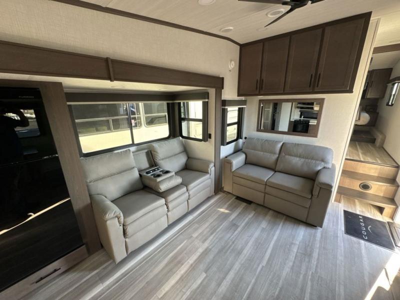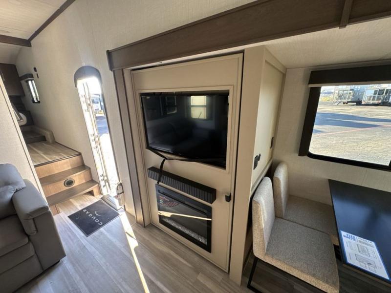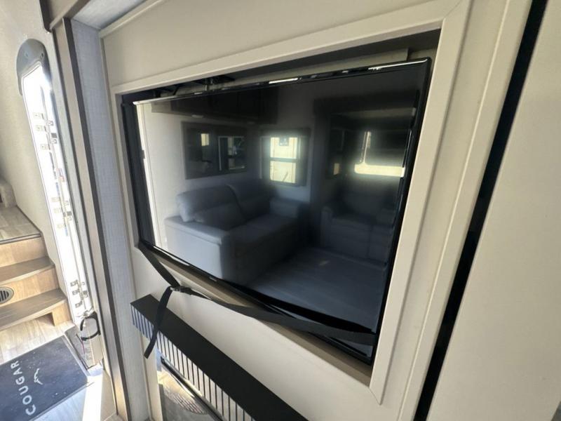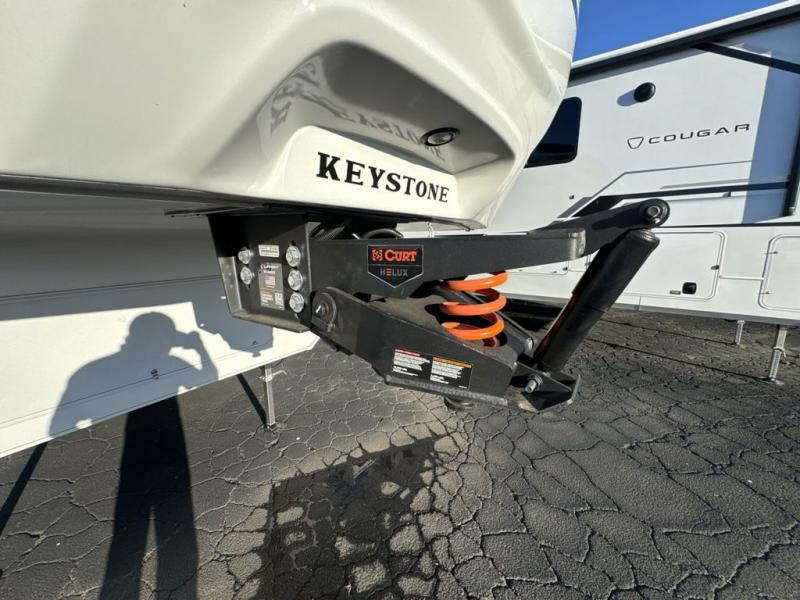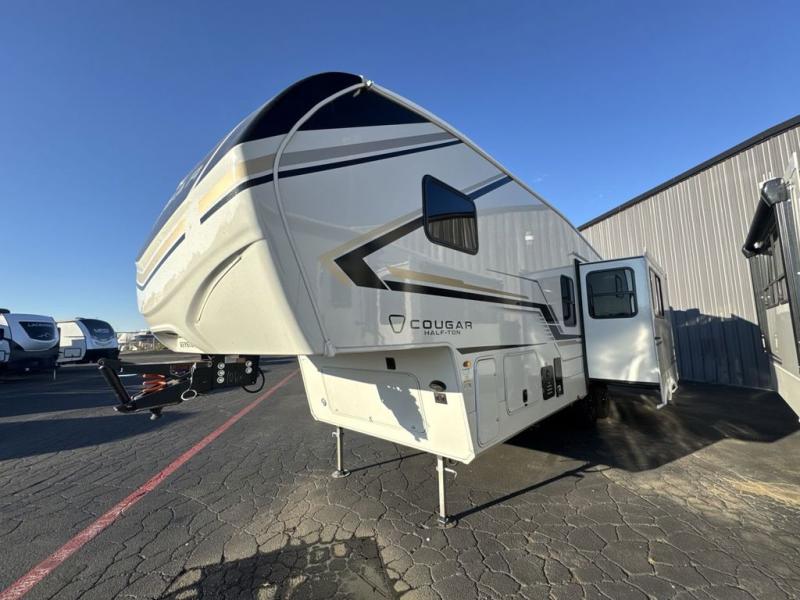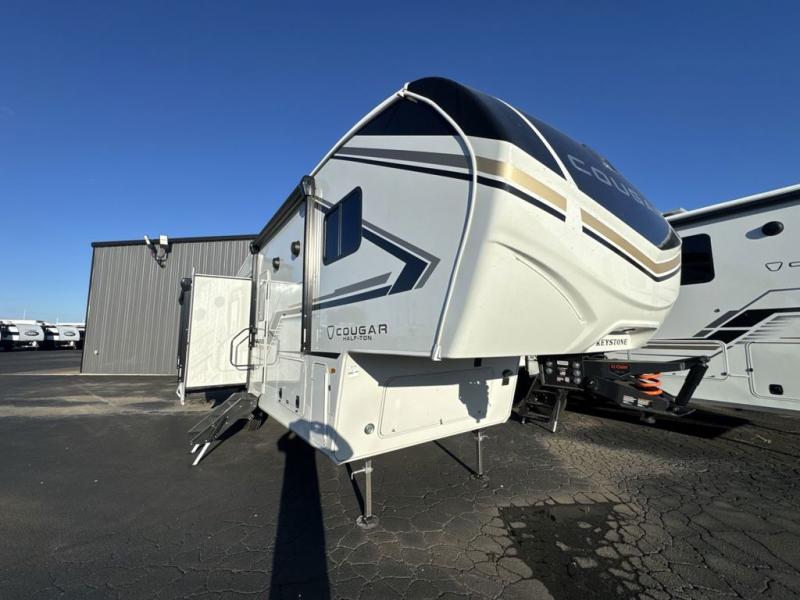 The Keystone Cougar Half-Ton fifth wheel and travel trailers are known as one of America's favorites for a reason! Some of those reasons are the exclusive features that come from Keystone, like the Winegard Air 360+ omni-directional rooftop antenna, the in-floor heating ducts, and the HyperCore composite wall construction with Vixen Fibrogloss high-gloss finish. The Cougar Half-Ton has a Climate Guard protection package with heat-deflecting white sidewalls, two roof attic vents, PEX plumbing and more to enjoy four season camping. Inside, you'll love the dimmable lighting, night roller shades throughout, shower skylight, and bedside USB outlets to keep your electronics charged.