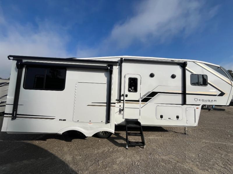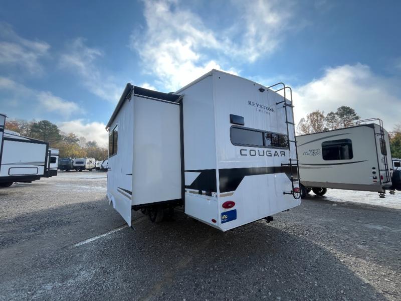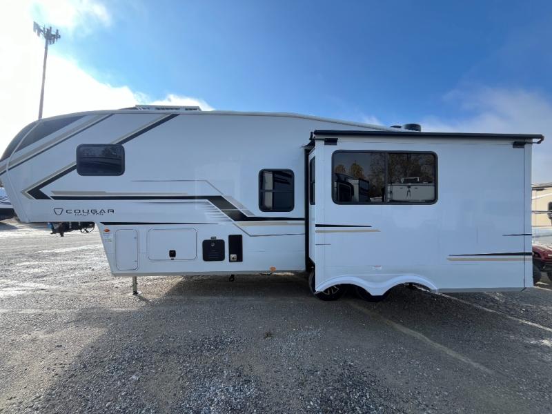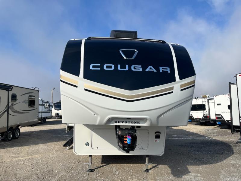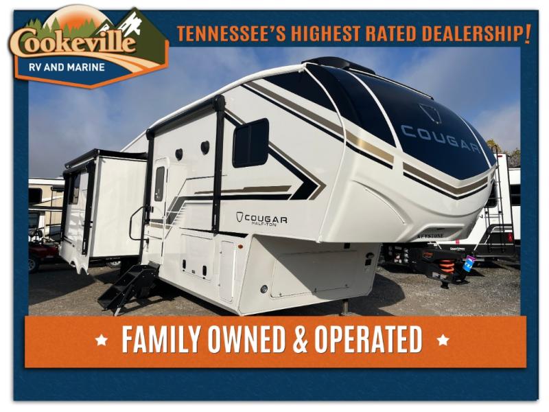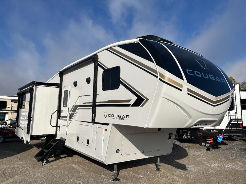 The Keystone Cougar Half-Ton fifth wheel and travel trailers are known as one of America's favorites for a reason! Some of those reasons are the exclusive features that come from Keystone, like the Winegard Air 360+ omni-directional rooftop antenna, the in-floor heating ducts, and the HyperCore composite wall construction with Vixen Fibrogloss high-gloss finish. The Cougar Half-Ton has a Climate Guard protection package with heat-deflecting white sidewalls, two roof attic vents, PEX plumbing and more to enjoy four season camping. Inside, you'll love the dimmable lighting, night roller shades throughout, shower skylight, and bedside USB outlets to keep your electronics charged.