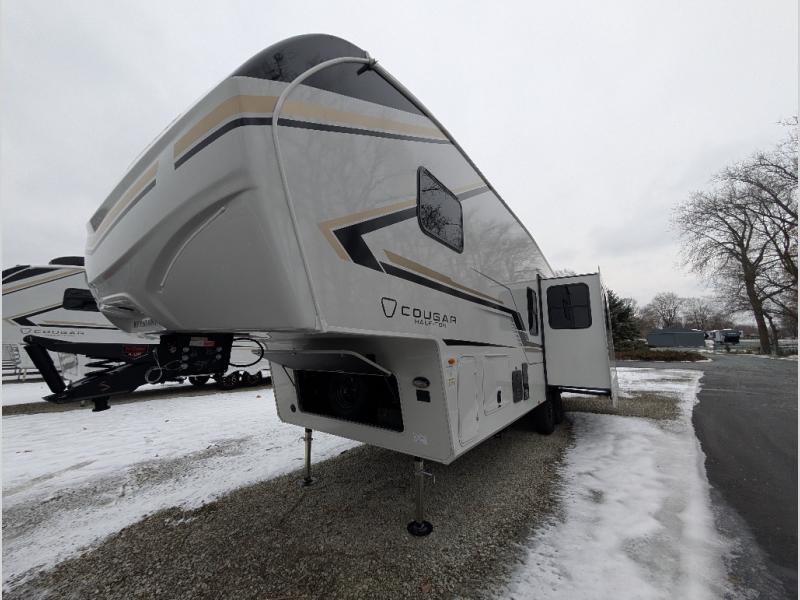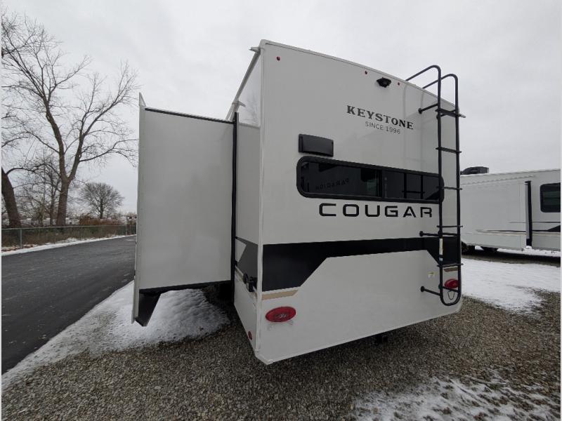 The Keystone Cougar Half-Ton fifth wheel and travel trailers are known as one of America's favorites for a reason! Some of those reasons are the exclusive features that come from Keystone, like the Winegard Air 360+ omni-directional rooftop antenna, the in-floor heating ducts, and the HyperCore composite wall construction with Vixen Fibrogloss high-gloss finish. The Cougar Half-Ton has a Climate Guard protection package with heat-deflecting white sidewalls, two roof attic vents, PEX plumbing and more to enjoy four season camping. Inside, you'll love the dimmable lighting, night roller shades throughout, shower skylight, and bedside USB outlets to keep your electronics charged.