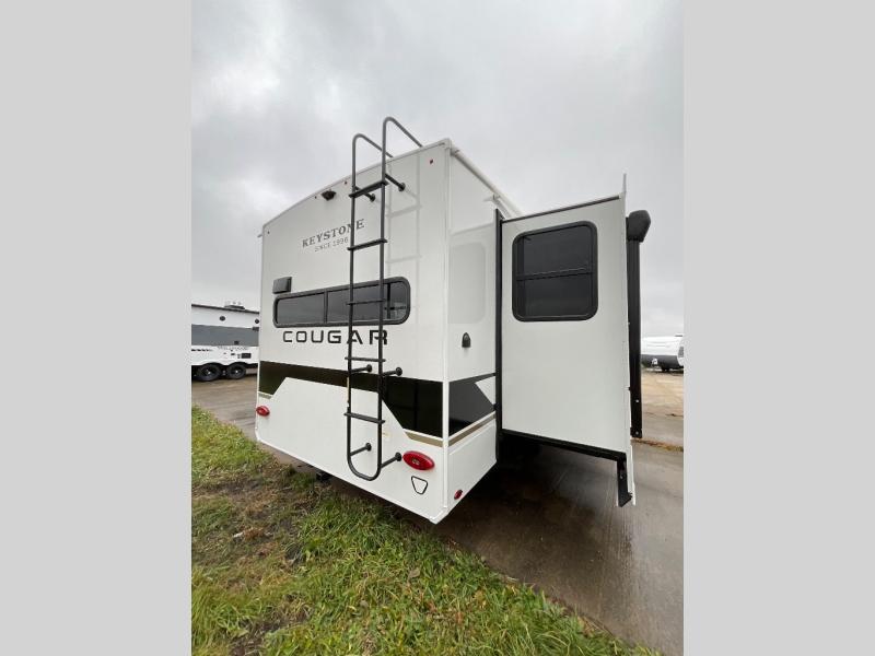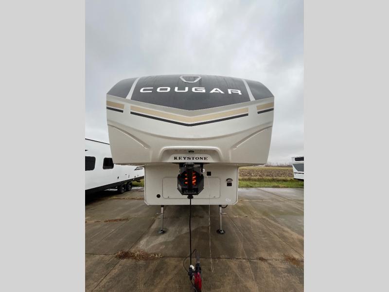 The Keystone Cougar Half-Ton fifth wheel and travel trailers are known as one of America's favorites for a reason! Some of those reasons are the exclusive features that come from Keystone, like the Winegard Air 360+ omni-directional rooftop antenna, the in-floor heating ducts, and the HyperCore composite wall construction with Vixen Fibrogloss high-gloss finish. The Cougar Half-Ton has a Climate Guard protection package with heat-deflecting white sidewalls, two roof attic vents, PEX plumbing and more to enjoy four season camping. Inside, you'll love the dimmable lighting, night roller shades throughout, shower skylight, and bedside USB outlets to keep your electronics charged.