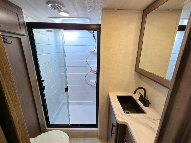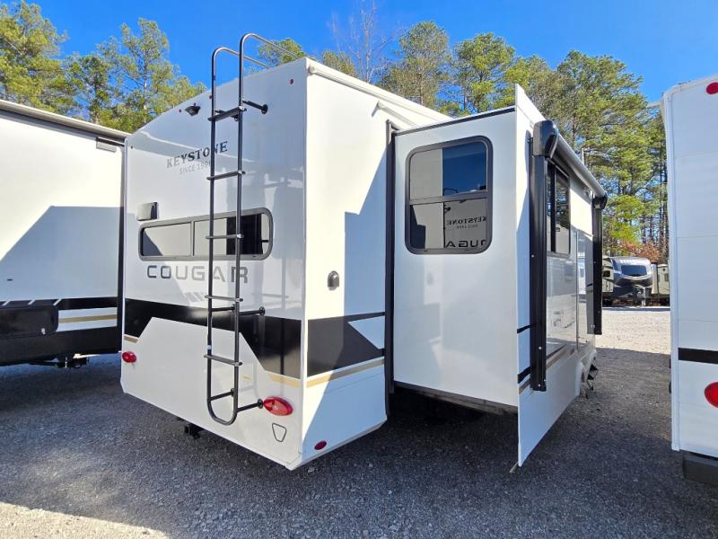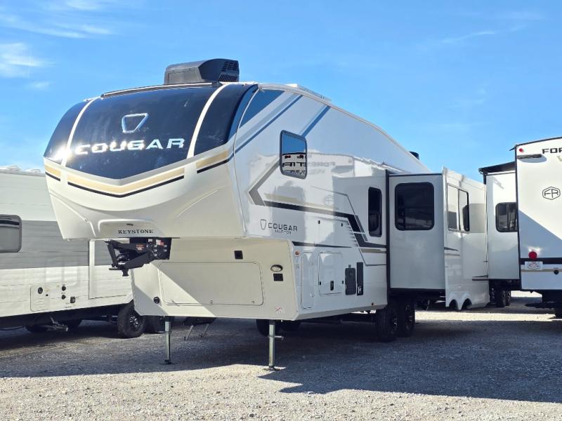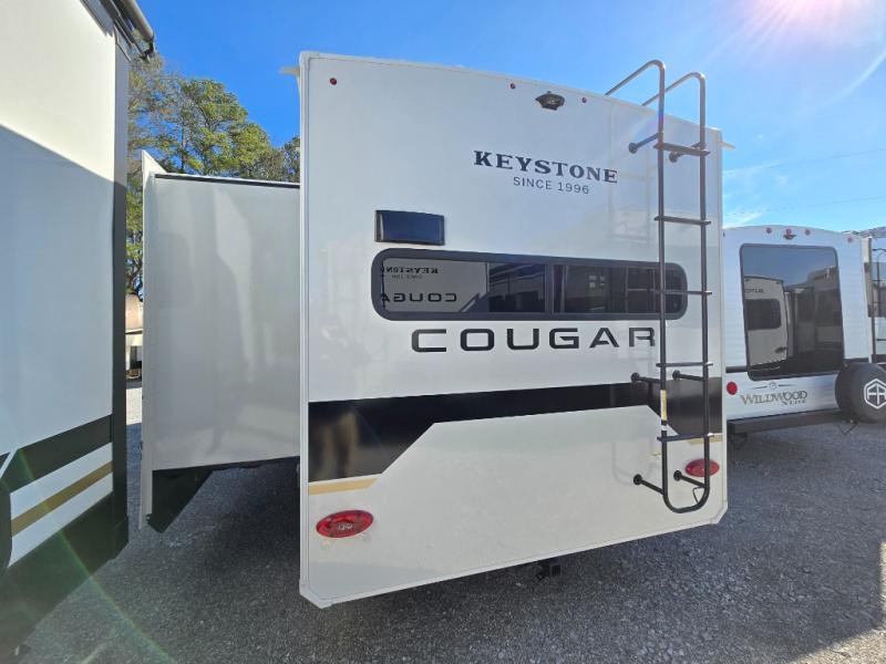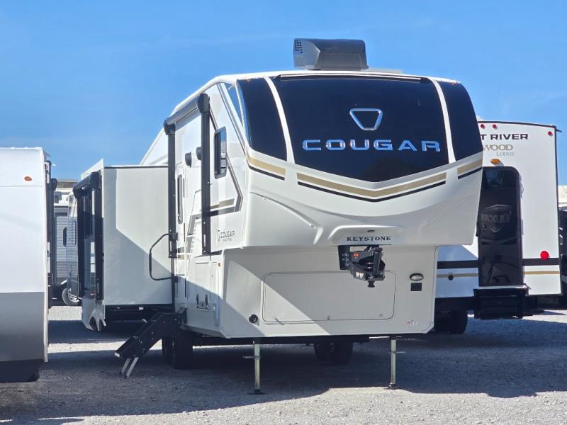 The Keystone Cougar Half-Ton fifth wheel and travel trailers are known as one of America's favorites for a reason! Some of those reasons are the exclusive features that come from Keystone, like the Winegard Air 360+ omni-directional rooftop antenna, the in-floor heating ducts, and the HyperCore composite wall construction with Vixen Fibrogloss high-gloss finish. The Cougar Half-Ton has a Climate Guard protection package with heat-deflecting white sidewalls, two roof attic vents, PEX plumbing and more to enjoy four season camping. Inside, you'll love the dimmable lighting, night roller shades throughout, shower skylight, and bedside USB outlets to keep your electronics charged.