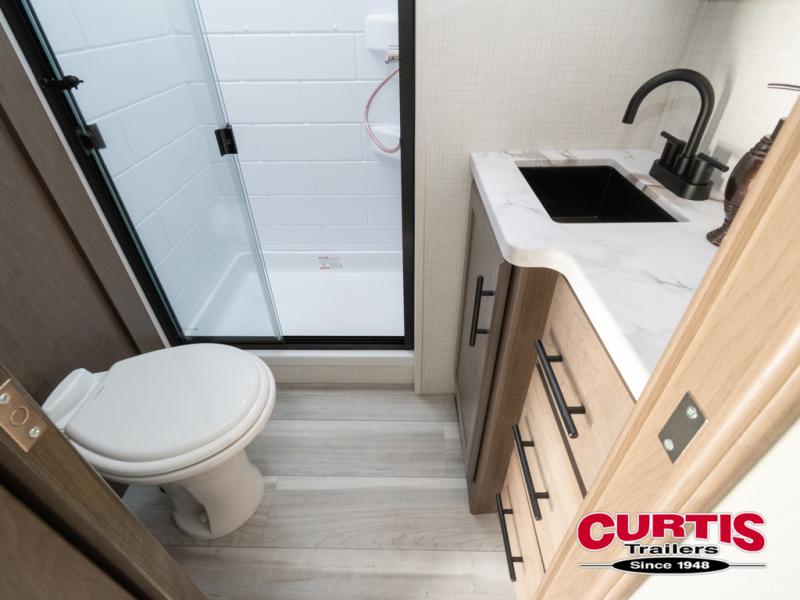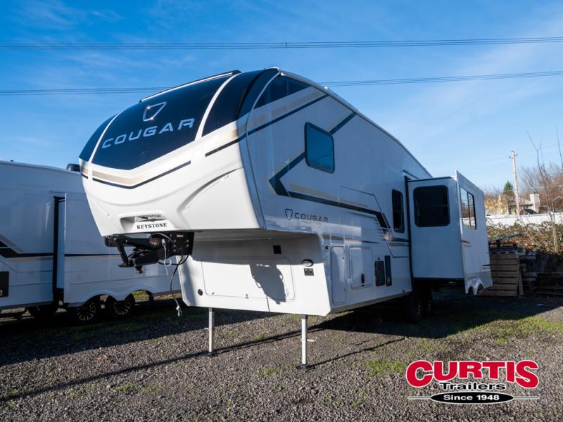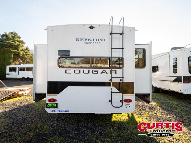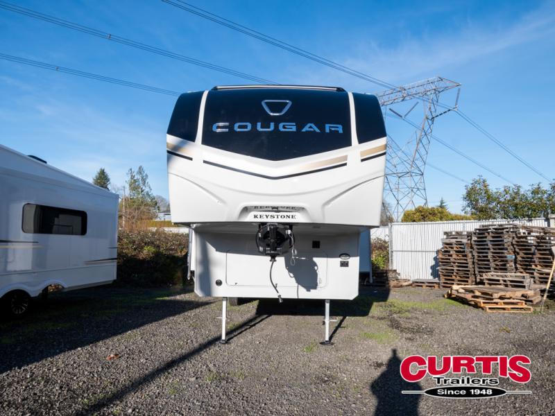 The Keystone Cougar Half-Ton fifth wheel and travel trailers are known as one of America's favorites for a reason! Some of those reasons are the exclusive features that come from Keystone, like the Winegard Air 360+ omni-directional rooftop antenna, the in-floor heating ducts, and the HyperCore composite wall construction with Vixen Fibrogloss high-gloss finish. The Cougar Half-Ton has a Climate Guard protection package with heat-deflecting white sidewalls, two roof attic vents, PEX plumbing and more to enjoy four season camping. Inside, you'll love the dimmable lighting, night roller shades throughout, shower skylight, and bedside USB outlets to keep your electronics charged.