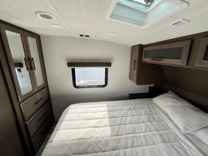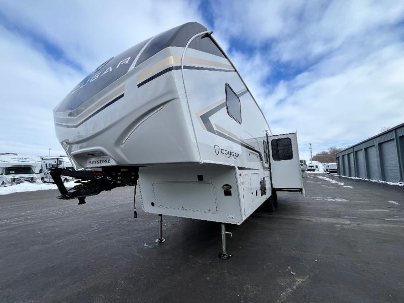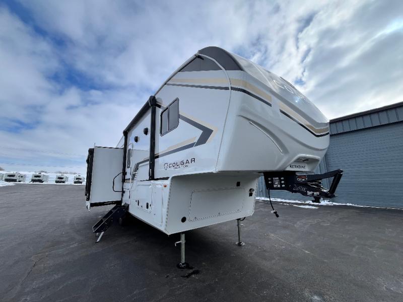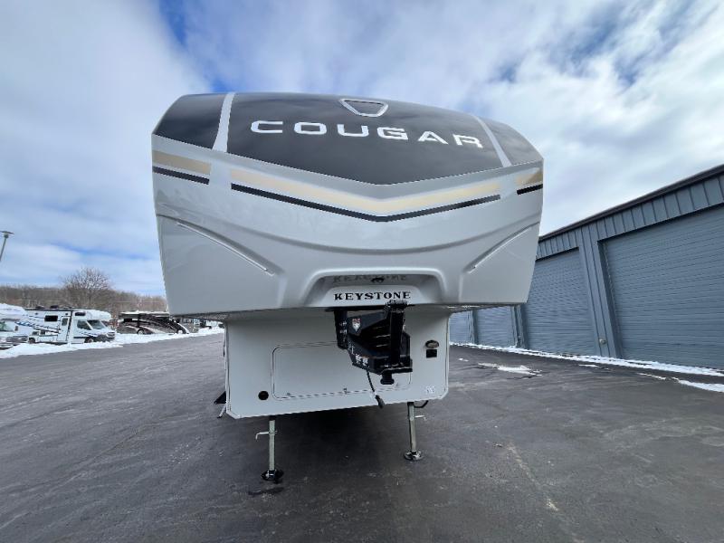 The Keystone Cougar Half-Ton fifth wheel and travel trailers are known as one of America's favorites for a reason! Some of those reasons are the exclusive features that come from Keystone, like the Winegard Air 360+ omni-directional rooftop antenna, the in-floor heating ducts, and the HyperCore composite wall construction with Vixen Fibrogloss high-gloss finish. The Cougar Half-Ton has a Climate Guard protection package with heat-deflecting white sidewalls, two roof attic vents, PEX plumbing and more to enjoy four season camping. Inside, you'll love the dimmable lighting, night roller shades throughout, shower skylight, and bedside USB outlets to keep your electronics charged.