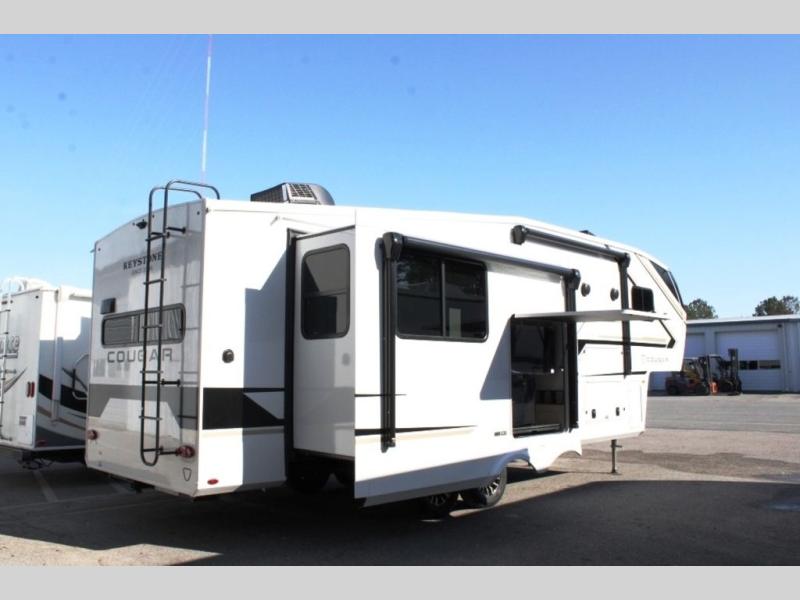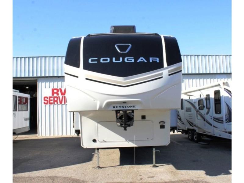 The Keystone Cougar Half-Ton fifth wheel and travel trailers are known as one of America's favorites for a reason! Some of those reasons are the exclusive features that come from Keystone, like the Winegard Air 360+ omni-directional rooftop antenna, the in-floor heating ducts, and the HyperCore composite wall construction with Vixen Fibrogloss high-gloss finish. The Cougar Half-Ton has a Climate Guard protection package with heat-deflecting white sidewalls, two roof attic vents, PEX plumbing and more to enjoy four season camping. Inside, you'll love the dimmable lighting, night roller shades throughout, shower skylight, and bedside USB outlets to keep your electronics charged.