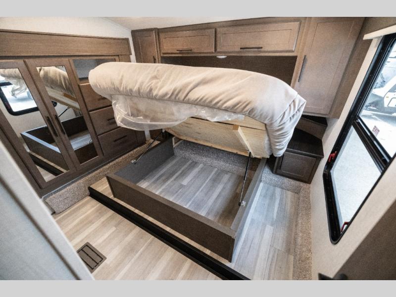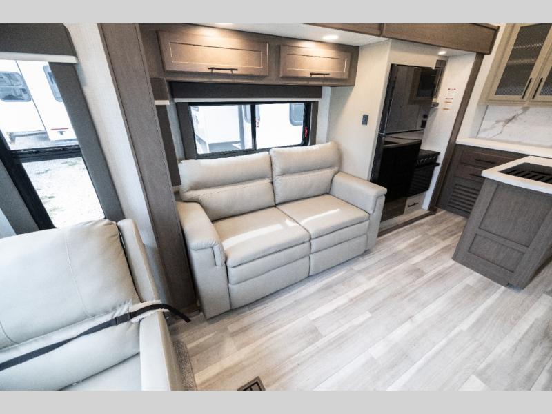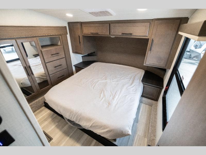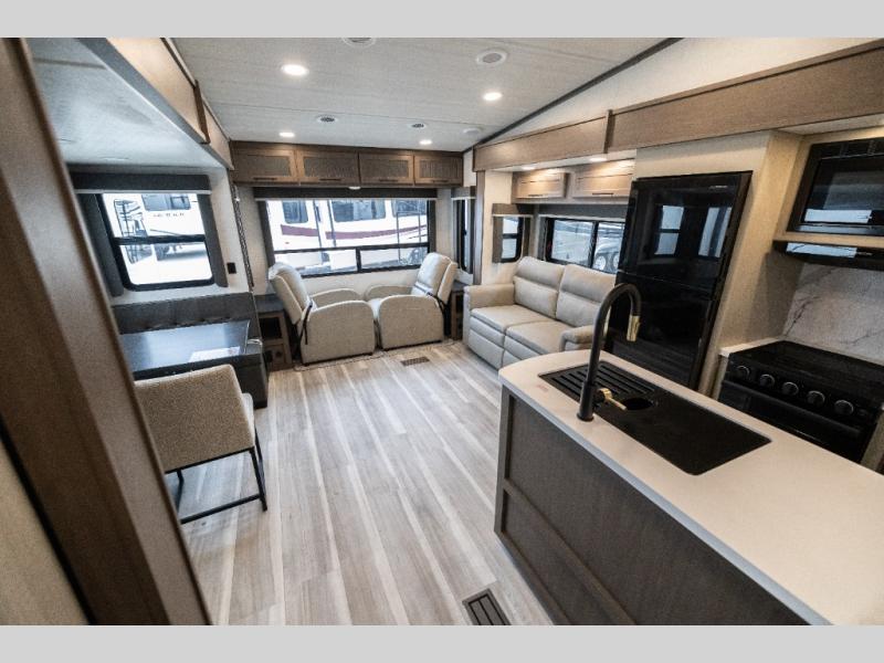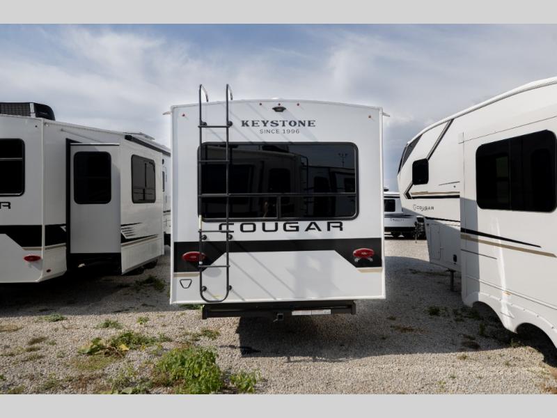 The Keystone Cougar Half-Ton fifth wheel and travel trailers are known as one of America's favorites for a reason! Some of those reasons are the exclusive features that come from Keystone, like the Winegard Air 360+ omni-directional rooftop antenna, the in-floor heating ducts, and the HyperCore composite wall construction with Vixen Fibrogloss high-gloss finish. The Cougar Half-Ton has a Climate Guard protection package with heat-deflecting white sidewalls, two roof attic vents, PEX plumbing and more to enjoy four season camping. Inside, you'll love the dimmable lighting, night roller shades throughout, shower skylight, and bedside USB outlets to keep your electronics charged.