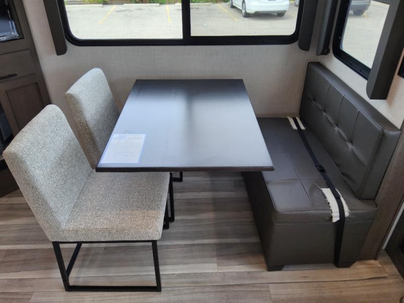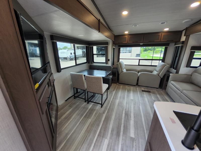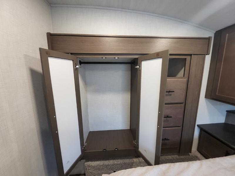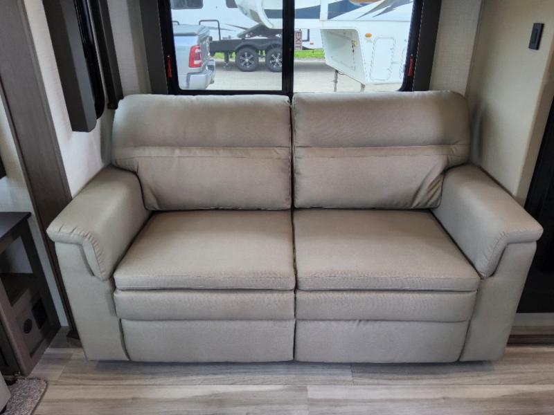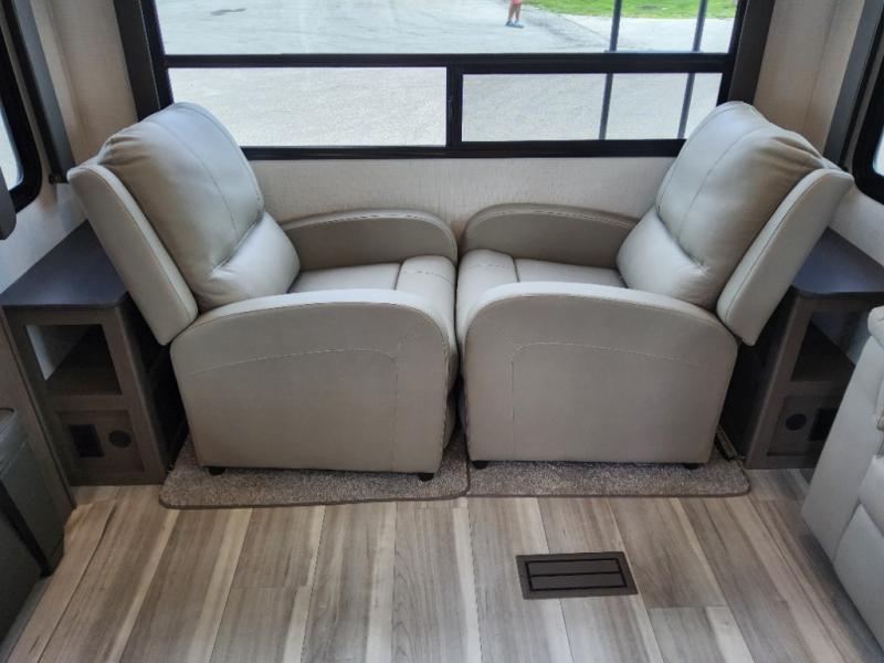 When you are ready to enjoy the fresh outdoor air, you'll want this Cougar Half-Ton fifth wheel to be there with you! The interior will feel spacious and comfortable because of the opposing slides, and you'll have plenty of seating to offer to any friends that stop by with the two recliners in the back, the tri-fold sleeper sofa and the optional free-standing dinette. You can sit down and chat, or you can head outside to grab some fresh air underneath the 10' power awning. When you're ready to call it a night, the queen bed in the front bedroom is sure to bring a great night's rest, and there is a wardrobe slide for added space and storage!