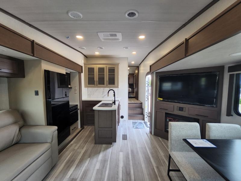 The Keystone Cougar Half-Ton fifth wheel and travel trailers are known as one of America's favorites for a reason! Some of those reasons are the exclusive features that come from Keystone, like the Winegard Air 360+ omni-directional rooftop antenna, the in-floor heating ducts, and the HyperCore composite wall construction with Vixen Fibrogloss high-gloss finish. The Cougar Half-Ton has a Climate Guard protection package with heat-deflecting white sidewalls, two roof attic vents, PEX plumbing and more to enjoy four season camping. Inside, you'll love the dimmable lighting, night roller shades throughout, shower skylight, and bedside USB outlets to keep your electronics charged.