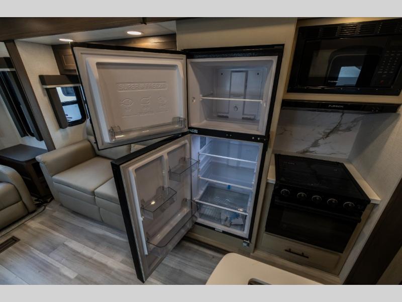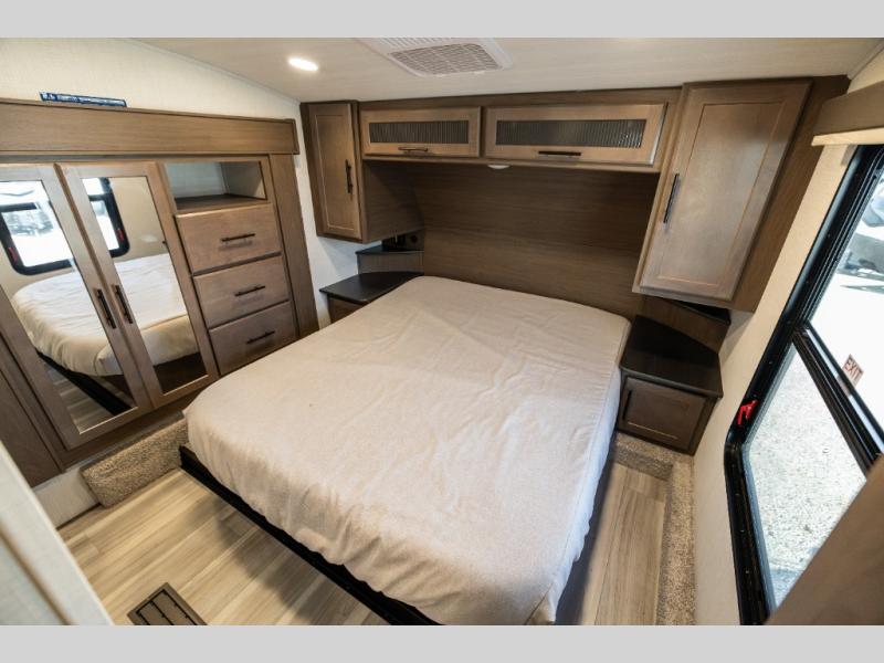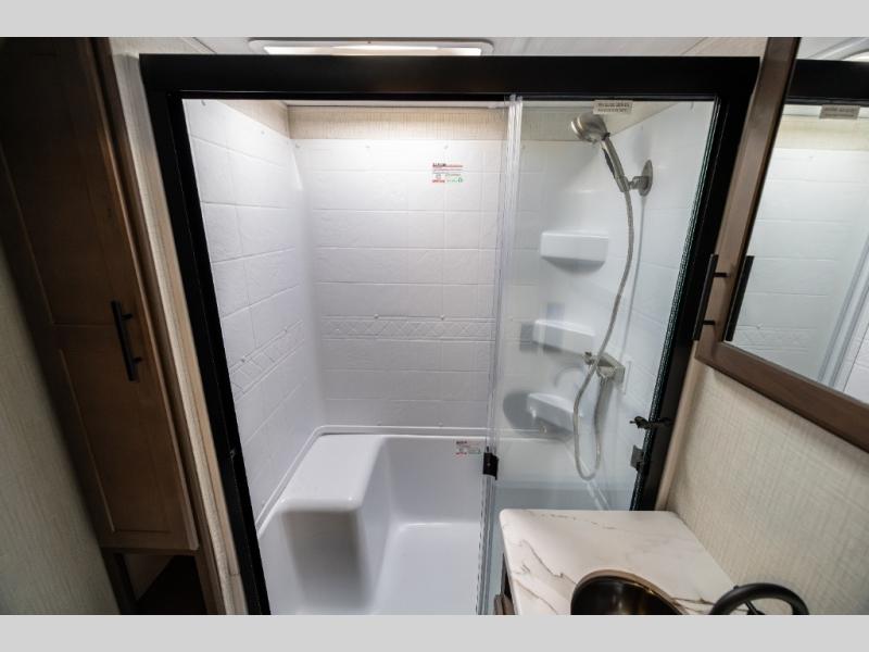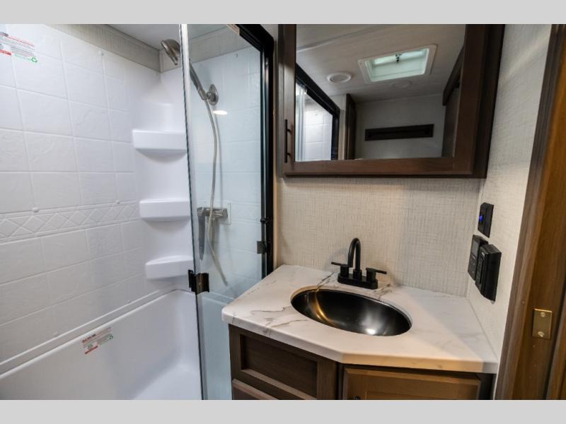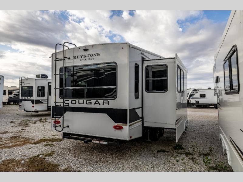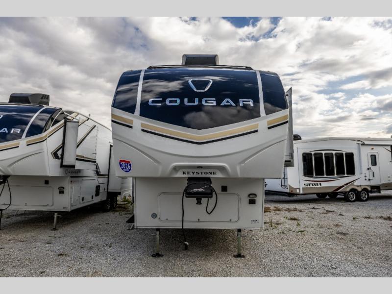 The Keystone Cougar Half-Ton fifth wheel and travel trailers are known as one of America's favorites for a reason! Some of those reasons are the exclusive features that come from Keystone, like the Winegard Air 360+ omni-directional rooftop antenna, the in-floor heating ducts, and the HyperCore composite wall construction with Vixen Fibrogloss high-gloss finish. The Cougar Half-Ton has a Climate Guard protection package with heat-deflecting white sidewalls, two roof attic vents, PEX plumbing and more to enjoy four season camping. Inside, you'll love the dimmable lighting, night roller shades throughout, shower skylight, and bedside USB outlets to keep your electronics charged.