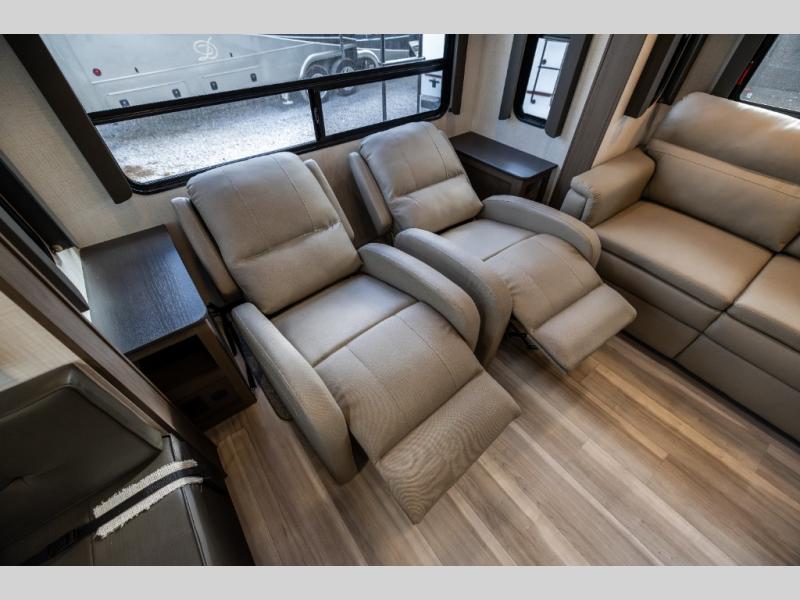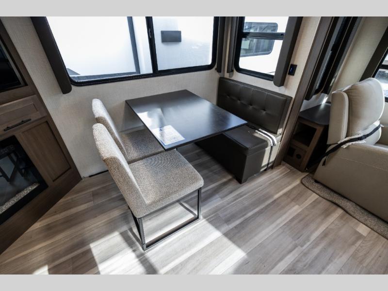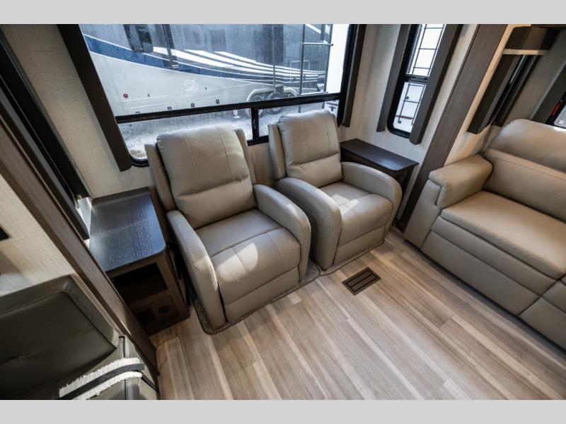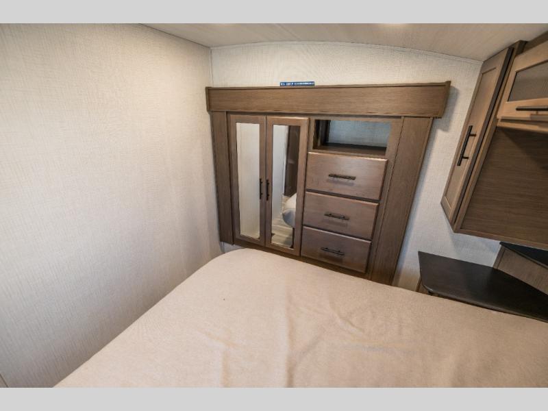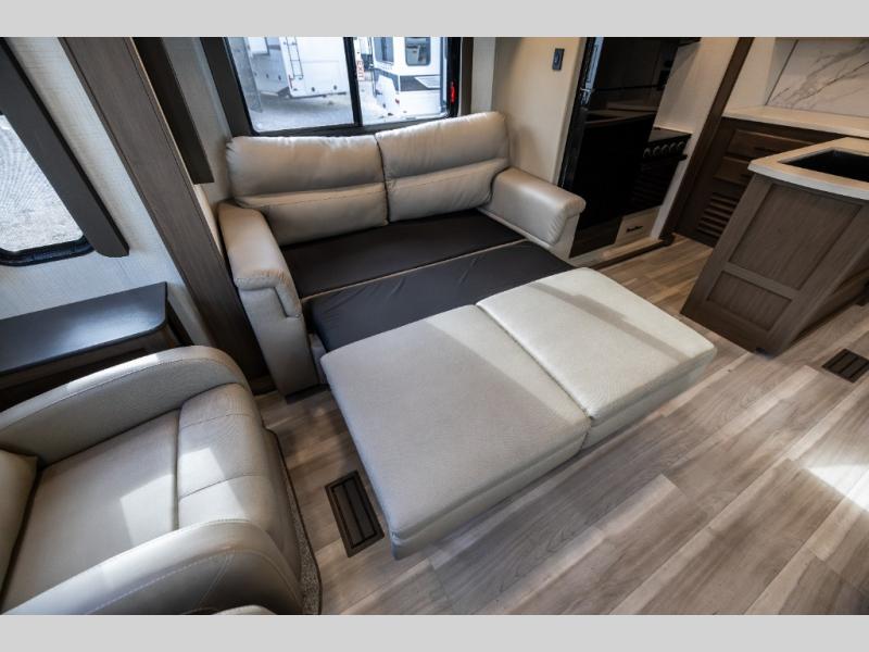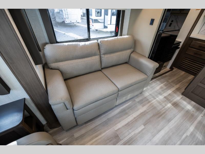 When you are ready to enjoy the fresh outdoor air, you'll want this Cougar Half-Ton fifth wheel to be there with you! The interior will feel spacious and comfortable because of the opposing slides, and you'll have plenty of seating to offer to any friends that stop by with the two recliners in the back, the tri-fold sleeper sofa and the optional free-standing dinette. You can sit down and chat, or you can head outside to grab some fresh air underneath the 10' power awning. When you're ready to call it a night, the queen bed in the front bedroom is sure to bring a great night's rest, and there is a wardrobe slide for added space and storage!