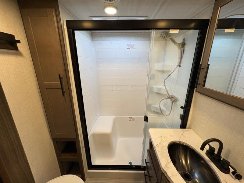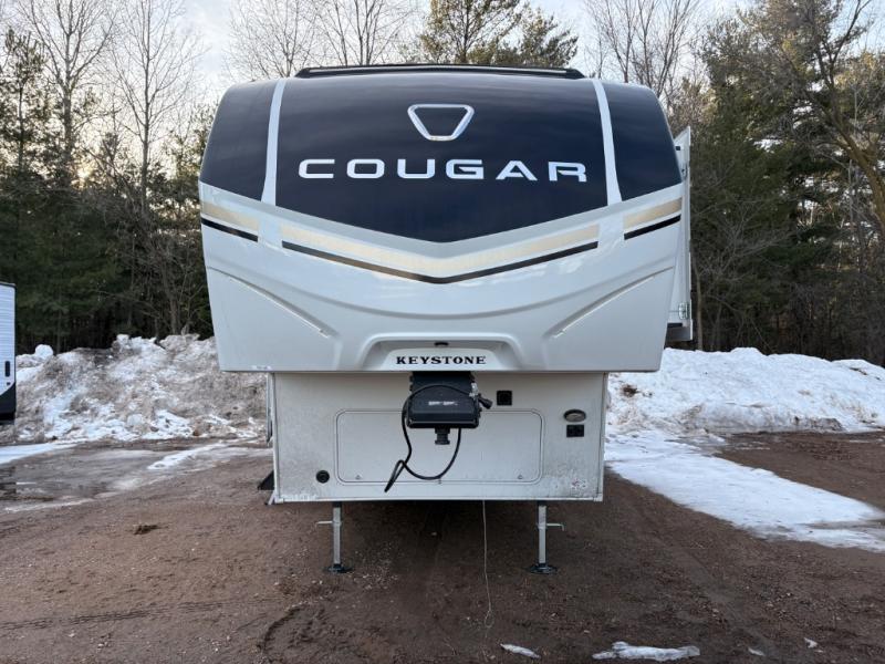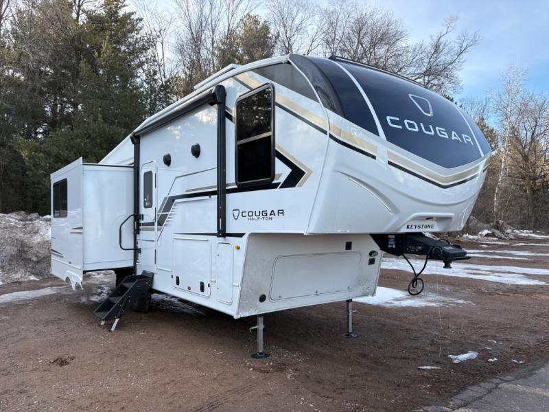 The Keystone Cougar Half-Ton fifth wheel and travel trailers are known as one of America's favorites for a reason! Some of those reasons are the exclusive features that come from Keystone, like the Winegard Air 360+ omni-directional rooftop antenna, the in-floor heating ducts, and the HyperCore composite wall construction with Vixen Fibrogloss high-gloss finish. The Cougar Half-Ton has a Climate Guard protection package with heat-deflecting white sidewalls, two roof attic vents, PEX plumbing and more to enjoy four season camping. Inside, you'll love the dimmable lighting, night roller shades throughout, shower skylight, and bedside USB outlets to keep your electronics charged.