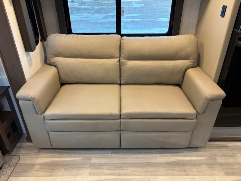 When you are ready to enjoy the fresh outdoor air, you'll want this Cougar Half-Ton fifth wheel to be there with you! The interior will feel spacious and comfortable because of the opposing slides, and you'll have plenty of seating to offer to any friends that stop by with the two recliners in the back, the tri-fold sleeper sofa and the optional free-standing dinette. You can sit down and chat, or you can head outside to grab some fresh air underneath the 10' power awning. When you're ready to call it a night, the queen bed in the front bedroom is sure to bring a great night's rest, and there is a wardrobe slide for added space and storage!