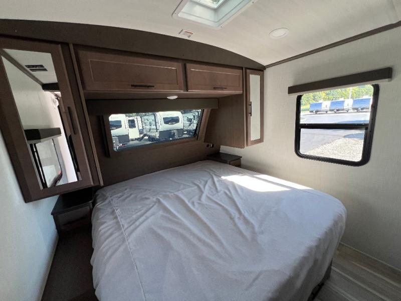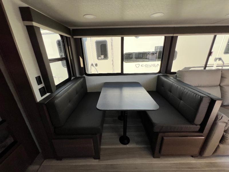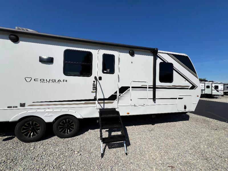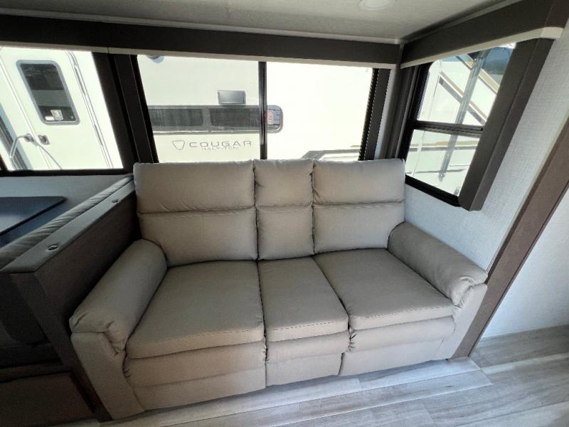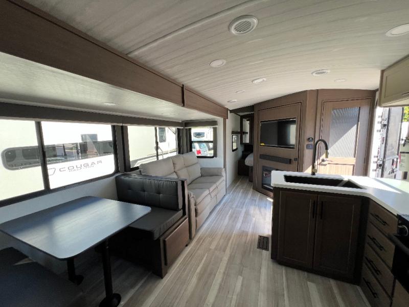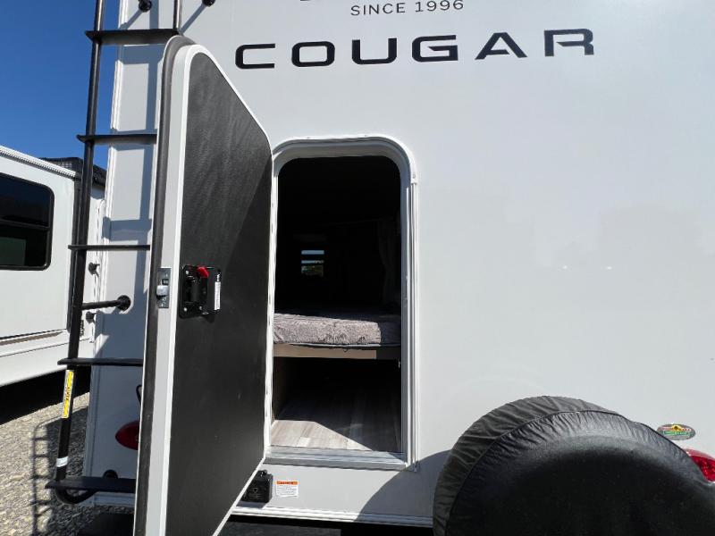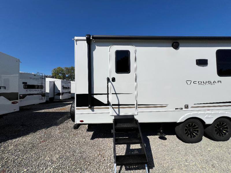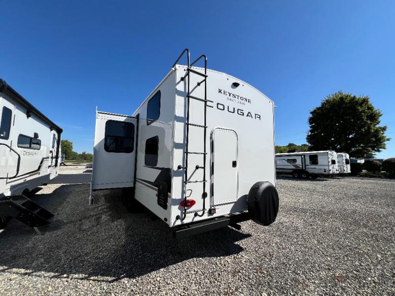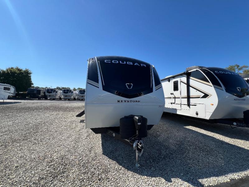 The Keystone Cougar Half-Ton fifth wheel and travel trailers are known as one of America's favorites for a reason! Some of those reasons are the exclusive features that come from Keystone, like the Winegard Air 360+ omni-directional rooftop antenna, the in-floor heating ducts, and the HyperCore composite wall construction with Vixen Fibrogloss high-gloss finish. The Cougar Half-Ton has a Climate Guard protection package with heat-deflecting white sidewalls, two roof attic vents, PEX plumbing and more to enjoy four season camping. Inside, you'll love the dimmable lighting, night roller shades throughout, shower skylight, and bedside USB outlets to keep your electronics charged.