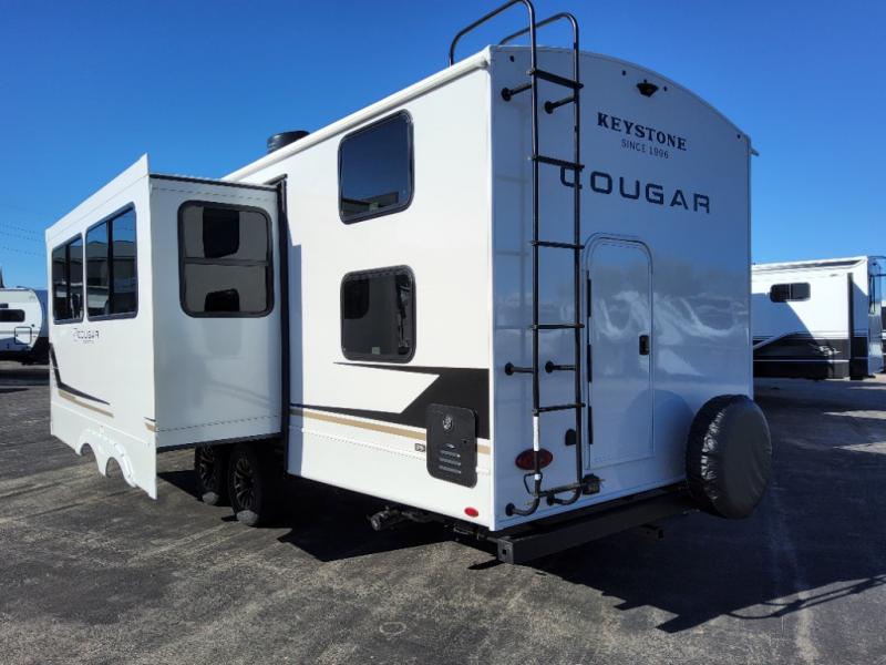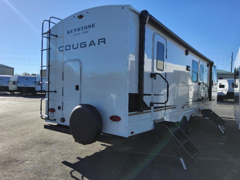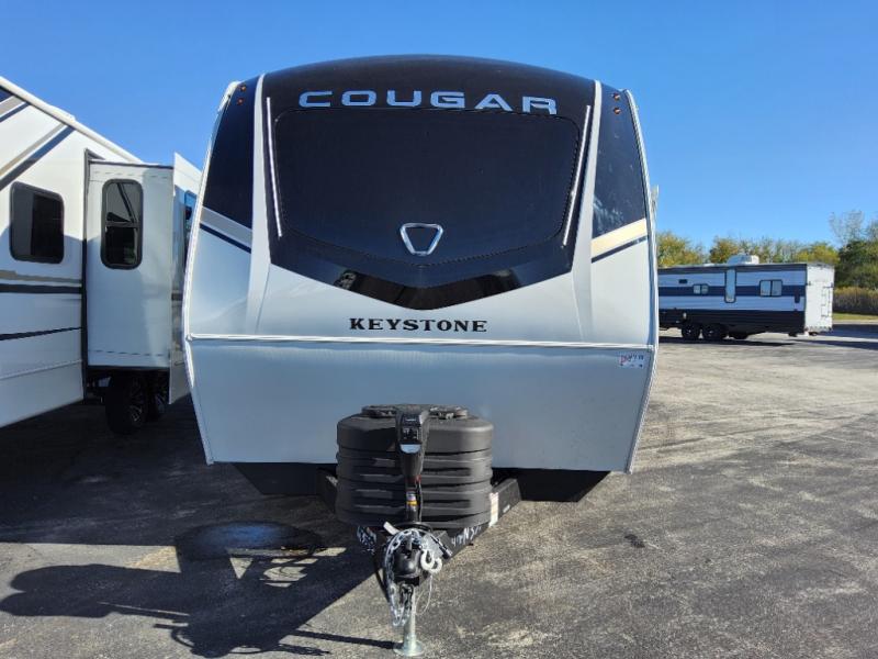 The Keystone Cougar Half-Ton fifth wheel and travel trailers are known as one of America's favorites for a reason! Some of those reasons are the exclusive features that come from Keystone, like the Winegard Air 360+ omni-directional rooftop antenna, the in-floor heating ducts, and the HyperCore composite wall construction with Vixen Fibrogloss high-gloss finish. The Cougar Half-Ton has a Climate Guard protection package with heat-deflecting white sidewalls, two roof attic vents, PEX plumbing and more to enjoy four season camping. Inside, you'll love the dimmable lighting, night roller shades throughout, shower skylight, and bedside USB outlets to keep your electronics charged.