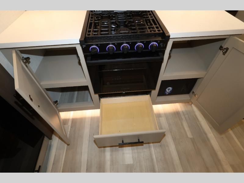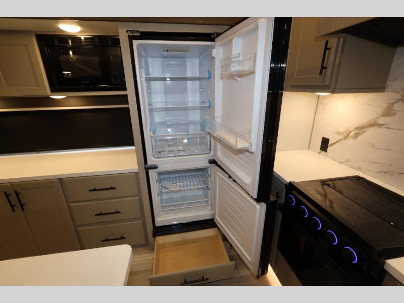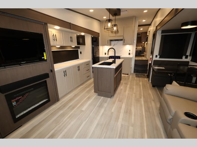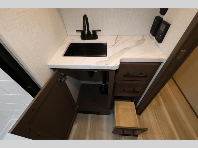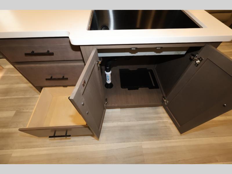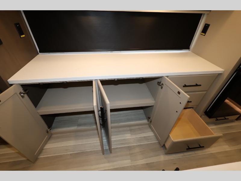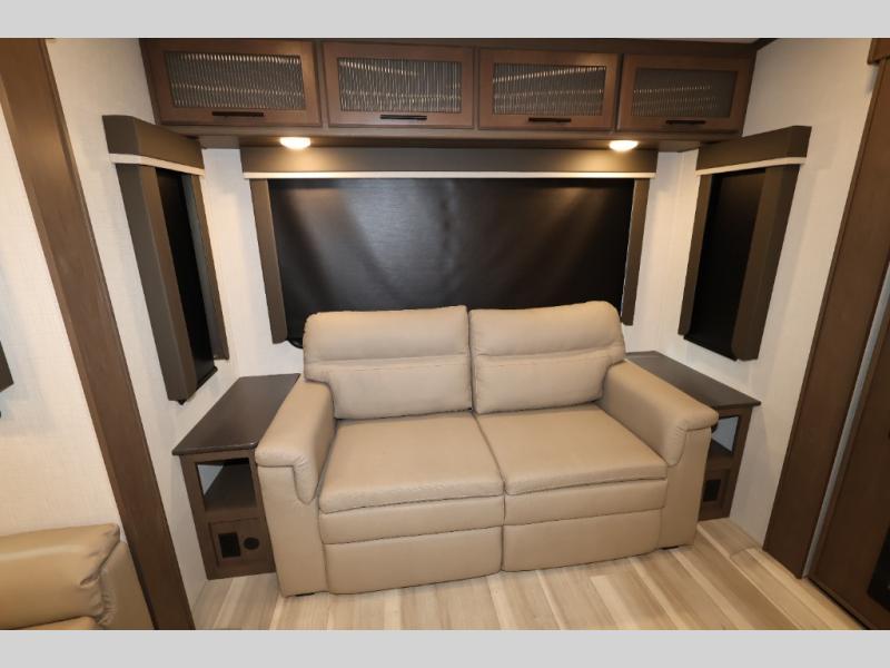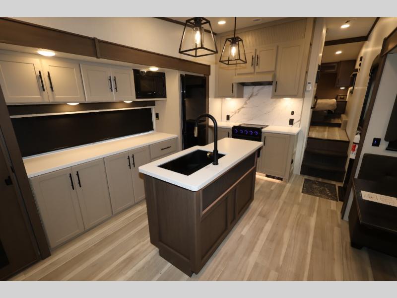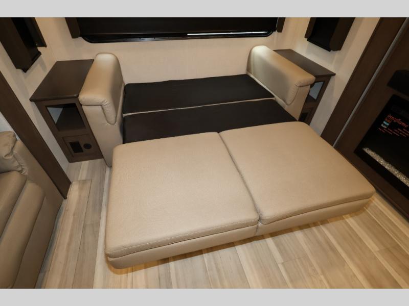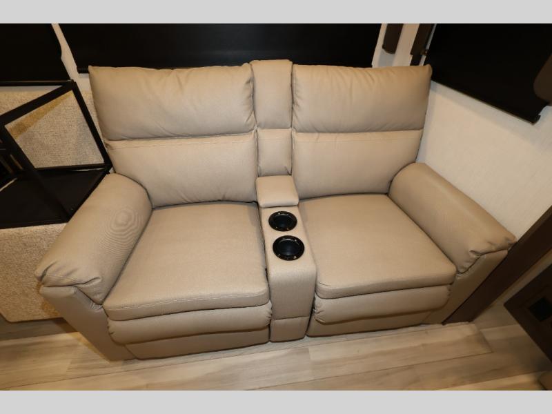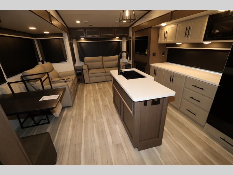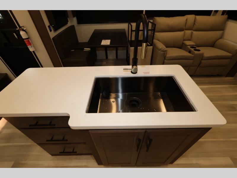 You will have the time of your life in this Cougar Half-Ton fifth wheel! There is so much comfort with the theater seating and tri-fold sleeper sofa with end tables in the living area. You also have lots of space in this area because of the opposing slides, so you can work freely around the kitchen island preparing dinner or washing dishes. The booth dinette is right next to the kitchen, so you won't have to go far to set the table. If you don't need the dinette to double as a bed, then you might be interested in switching it out for the optional free-standing table with chairs and an ottoman. You will also love the gourmet kitchen prep space with ample counter space to make your best meals!