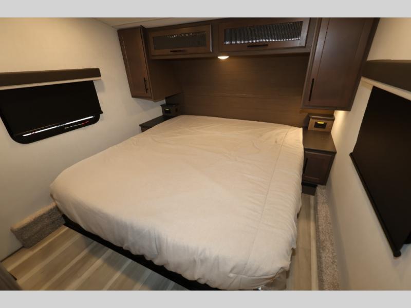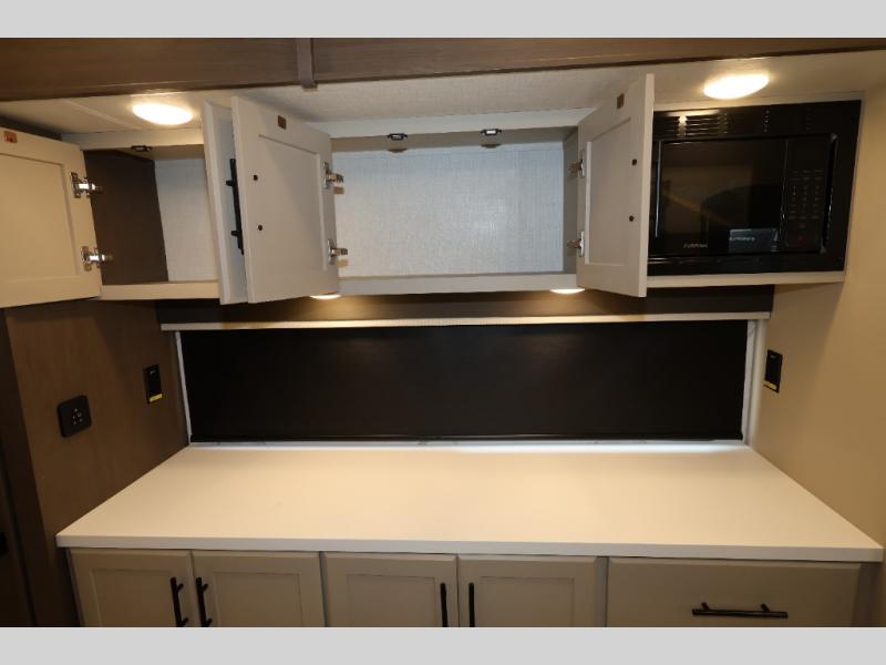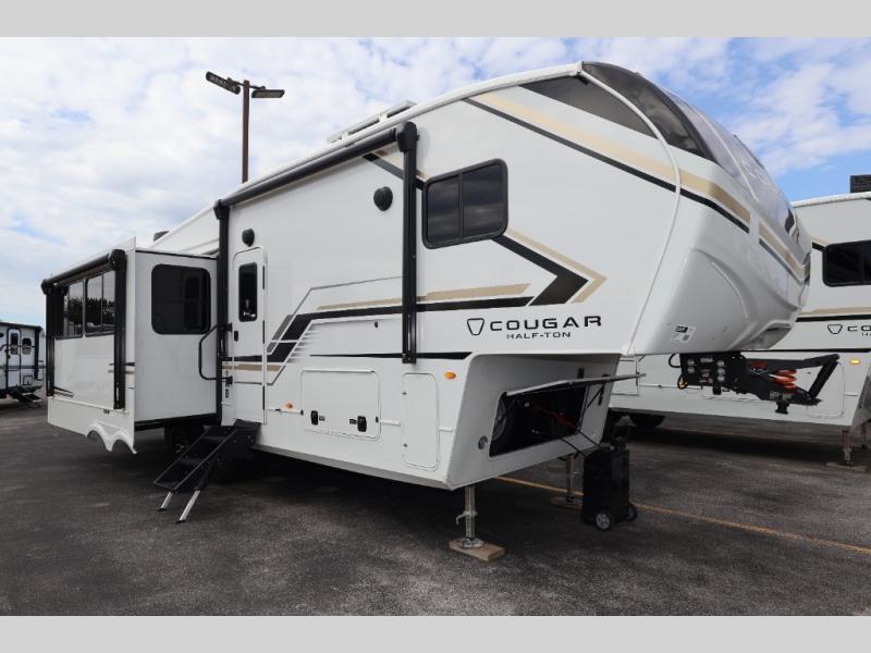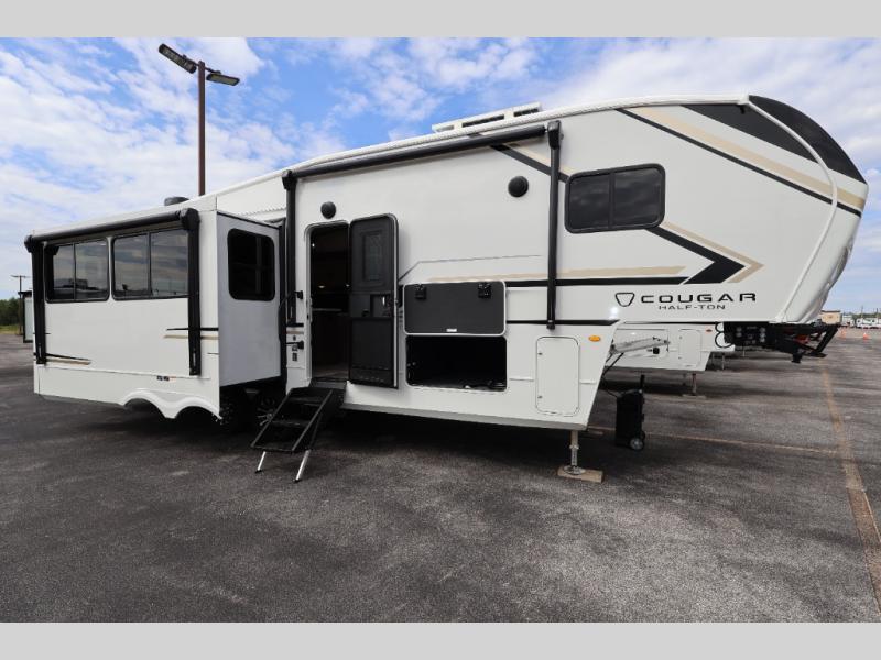 The Keystone Cougar Half-Ton fifth wheel and travel trailers are known as one of America's favorites for a reason! Some of those reasons are the exclusive features that come from Keystone, like the Winegard Air 360+ omni-directional rooftop antenna, the in-floor heating ducts, and the HyperCore composite wall construction with Vixen Fibrogloss high-gloss finish. The Cougar Half-Ton has a Climate Guard protection package with heat-deflecting white sidewalls, two roof attic vents, PEX plumbing and more to enjoy four season camping. Inside, you'll love the dimmable lighting, night roller shades throughout, shower skylight, and bedside USB outlets to keep your electronics charged.