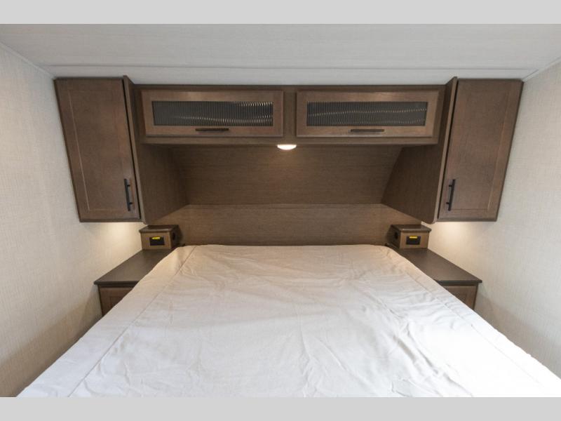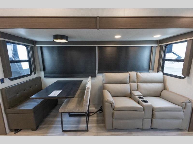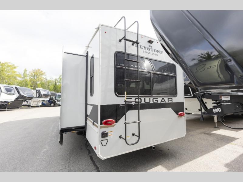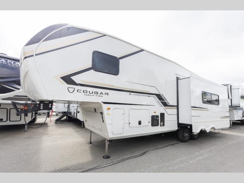 The Keystone Cougar Half-Ton fifth wheel and travel trailers are known as one of America's favorites for a reason! Some of those reasons are the exclusive features that come from Keystone, like the Winegard Air 360+ omni-directional rooftop antenna, the in-floor heating ducts, and the HyperCore composite wall construction with Vixen Fibrogloss high-gloss finish. The Cougar Half-Ton has a Climate Guard protection package with heat-deflecting white sidewalls, two roof attic vents, PEX plumbing and more to enjoy four season camping. Inside, you'll love the dimmable lighting, night roller shades throughout, shower skylight, and bedside USB outlets to keep your electronics charged.