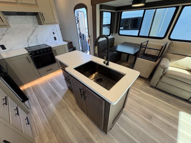 You will have the time of your life in this Cougar Half-Ton fifth wheel! There is so much comfort with the theater seating and tri-fold sleeper sofa with end tables in the living area. You also have lots of space in this area because of the opposing slides, so you can work freely around the kitchen island preparing dinner or washing dishes. The booth dinette is right next to the kitchen, so you won't have to go far to set the table. If you don't need the dinette to double as a bed, then you might be interested in switching it out for the optional free-standing table with chairs and an ottoman. You will also love the gourmet kitchen prep space with ample counter space to make your best meals!