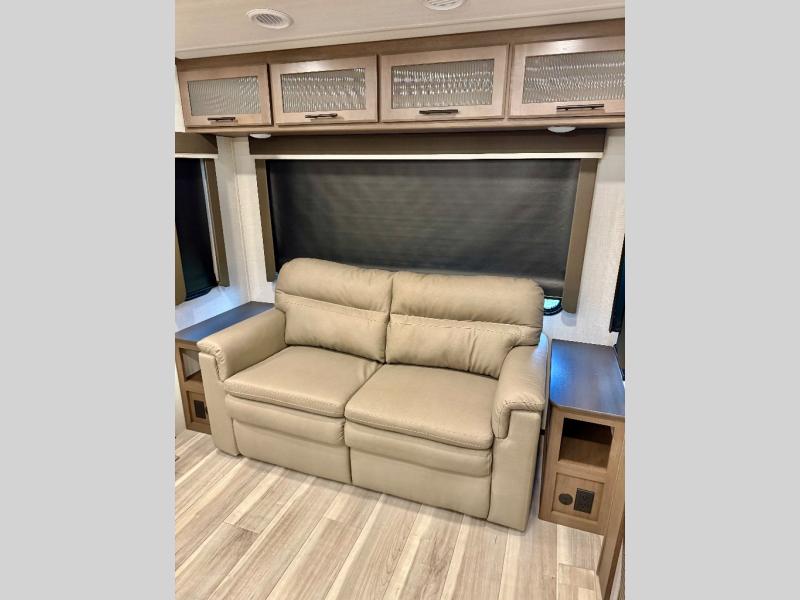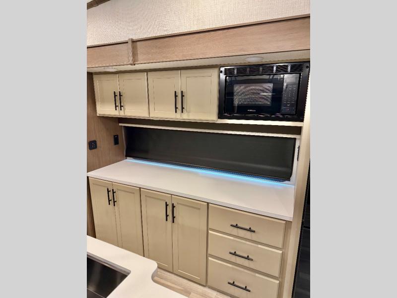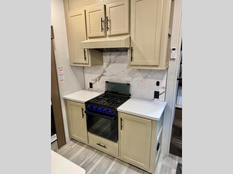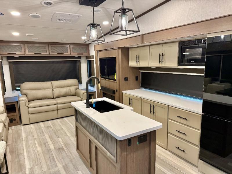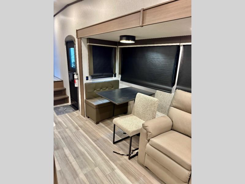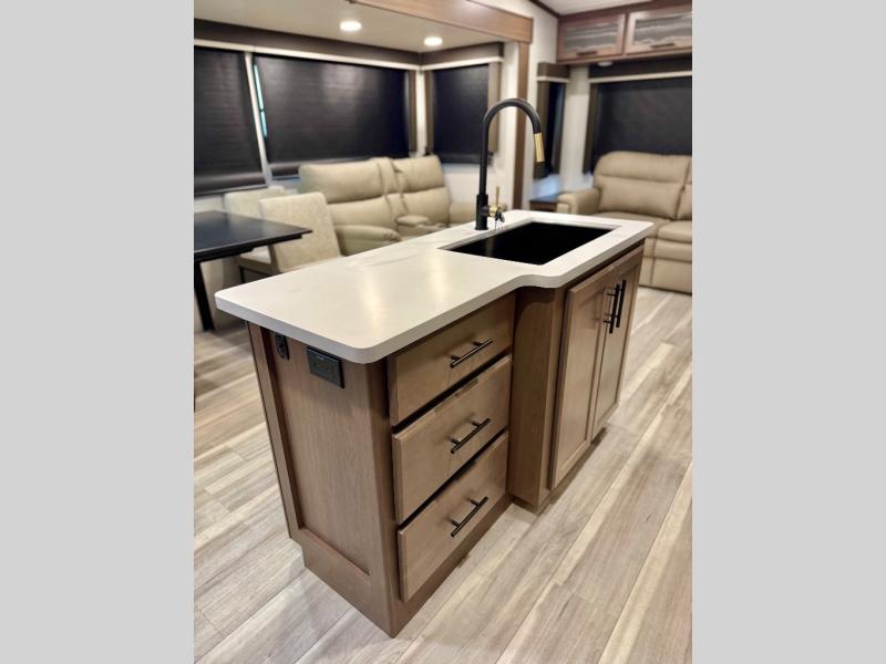 You will have the time of your life in this Cougar Half-Ton fifth wheel! There is so much comfort with the theater seating and tri-fold sleeper sofa with end tables in the living area. You also have lots of space in this area because of the opposing slides, so you can work freely around the kitchen island preparing dinner or washing dishes. The booth dinette is right next to the kitchen, so you won't have to go far to set the table. If you don't need the dinette to double as a bed, then you might be interested in switching it out for the optional free-standing table with chairs and an ottoman. You will also love the gourmet kitchen prep space with ample counter space to make your best meals!