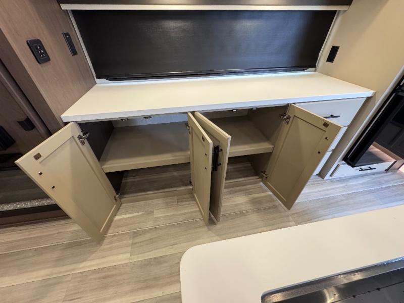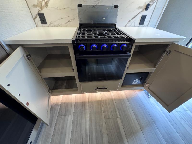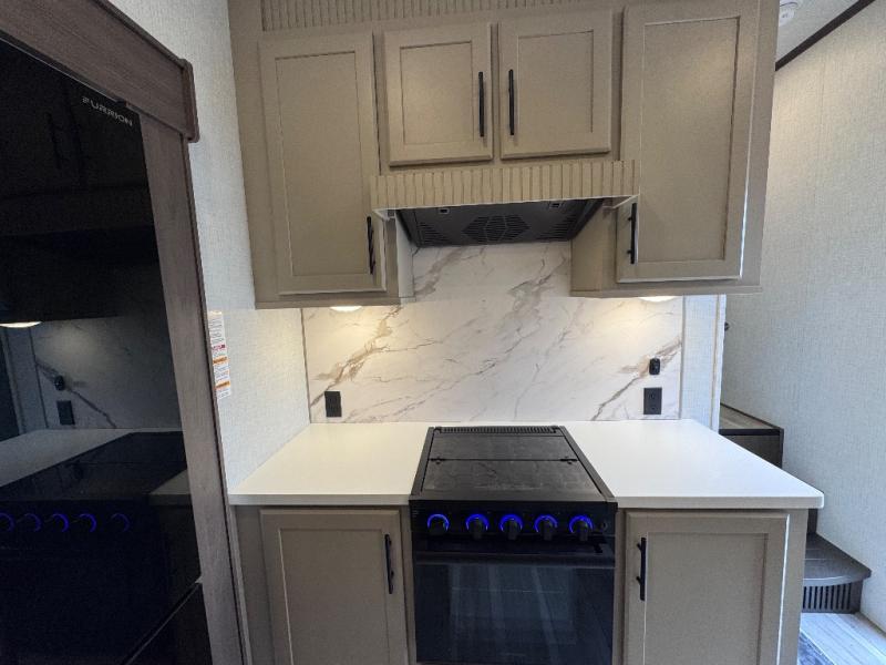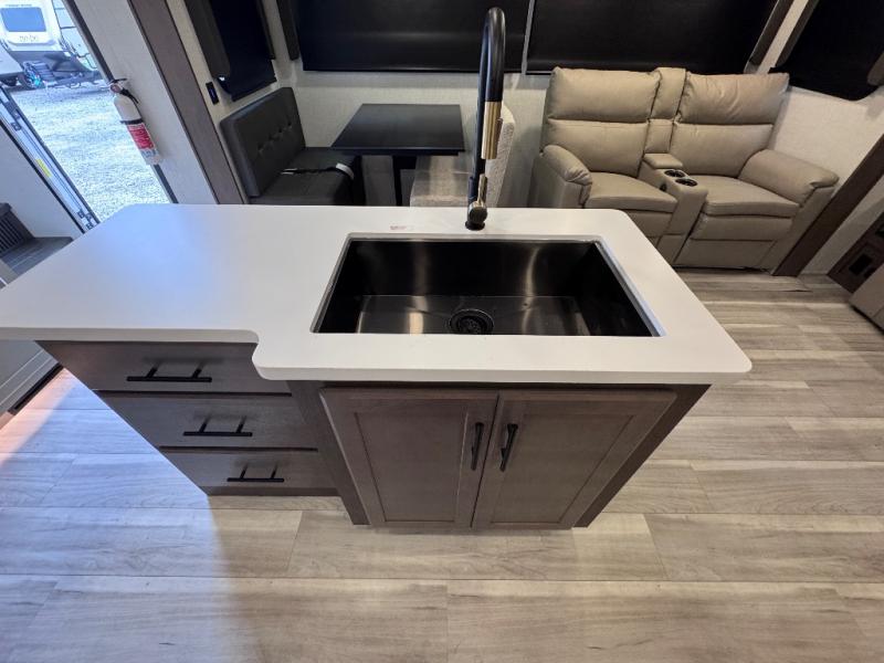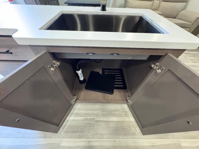 You will have the time of your life in this Cougar Half-Ton fifth wheel! There is so much comfort with the theater seating and tri-fold sleeper sofa with end tables in the living area. You also have lots of space in this area because of the opposing slides, so you can work freely around the kitchen island preparing dinner or washing dishes. The booth dinette is right next to the kitchen, so you won't have to go far to set the table. If you don't need the dinette to double as a bed, then you might be interested in switching it out for the optional free-standing table with chairs and an ottoman. You will also love the gourmet kitchen prep space with ample counter space to make your best meals!