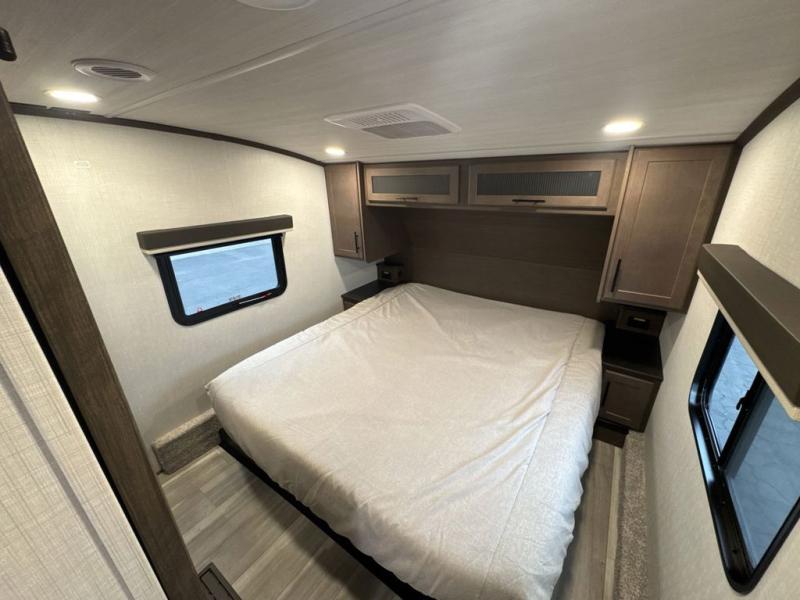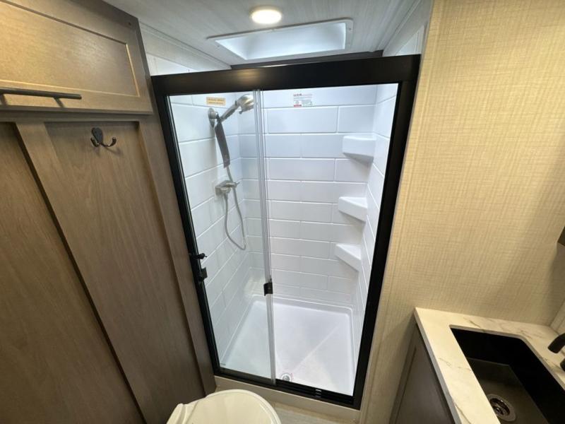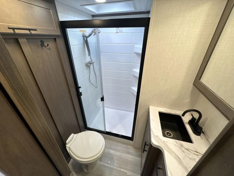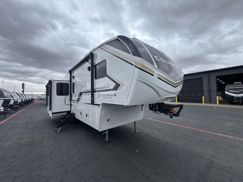 The Keystone Cougar Half-Ton fifth wheel and travel trailers are known as one of America's favorites for a reason! Some of those reasons are the exclusive features that come from Keystone, like the Winegard Air 360+ omni-directional rooftop antenna, the in-floor heating ducts, and the HyperCore composite wall construction with Vixen Fibrogloss high-gloss finish. The Cougar Half-Ton has a Climate Guard protection package with heat-deflecting white sidewalls, two roof attic vents, PEX plumbing and more to enjoy four season camping. Inside, you'll love the dimmable lighting, night roller shades throughout, shower skylight, and bedside USB outlets to keep your electronics charged.
