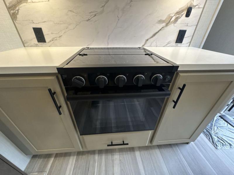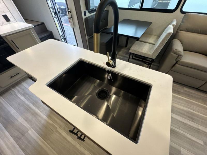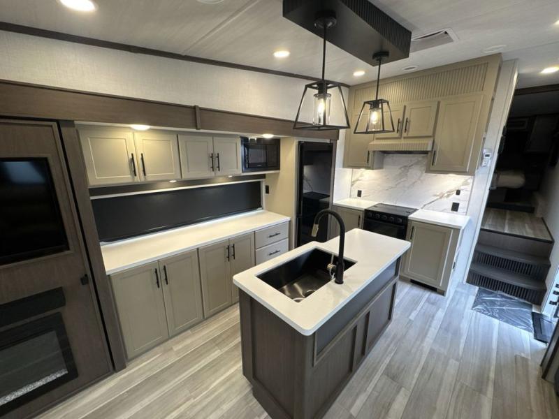 You will have the time of your life in this Cougar Half-Ton fifth wheel! There is so much comfort with the theater seating and tri-fold sleeper sofa with end tables in the living area. You also have lots of space in this area because of the opposing slides, so you can work freely around the kitchen island preparing dinner or washing dishes. The booth dinette is right next to the kitchen, so you won't have to go far to set the table. If you don't need the dinette to double as a bed, then you might be interested in switching it out for the optional free-standing table with chairs and an ottoman. You will also love the gourmet kitchen prep space with ample counter space to make your best meals!