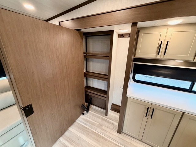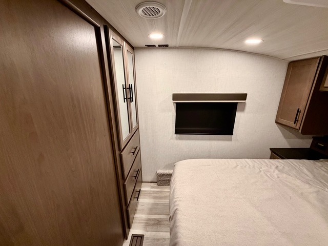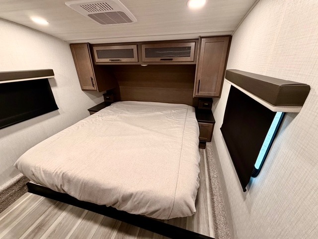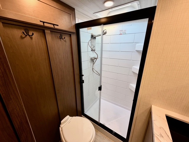 The Cougar Half-Ton fifth wheels are known for their quality and innovative features. Exclusive Keystone elements include the Winegard Air 360+ omni-directional rooftop antenna for improved connectivity, in-floor heating ducts for even warmth, and HyperCore composite wall construction with Vixen Fibrogloss high-gloss finish. The Climate Guard protection package adds heat-deflecting white sidewalls, dual roof attic vents, and PEX plumbing, allowing you to enjoy four-season camping. Inside, you’ll also find dimmable lighting, night roller shades, a shower skylight for natural light, and convenient bedside USB outlets to keep all your electronics charged and ready for adventure.