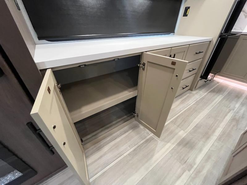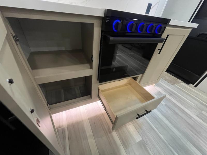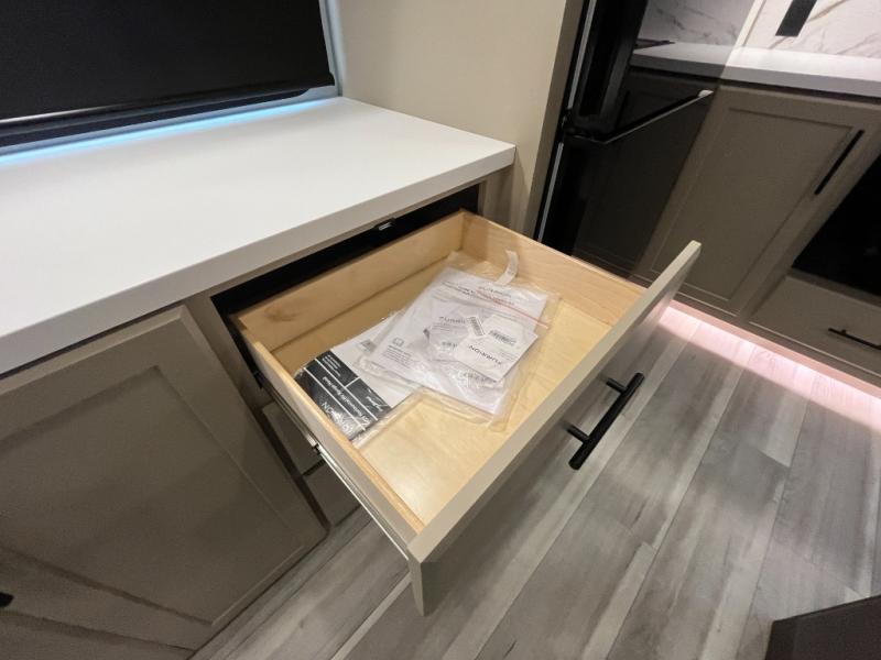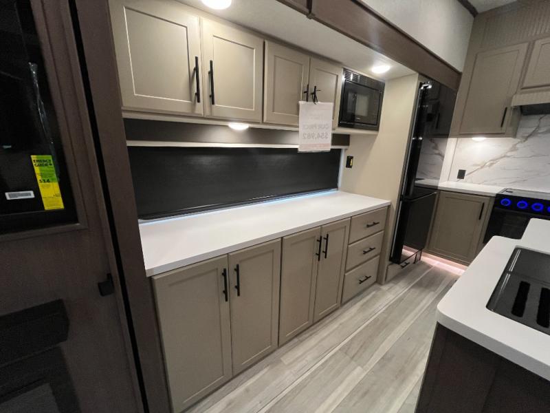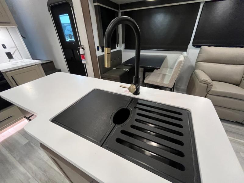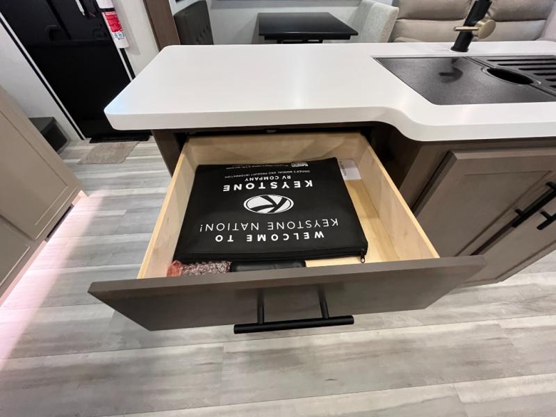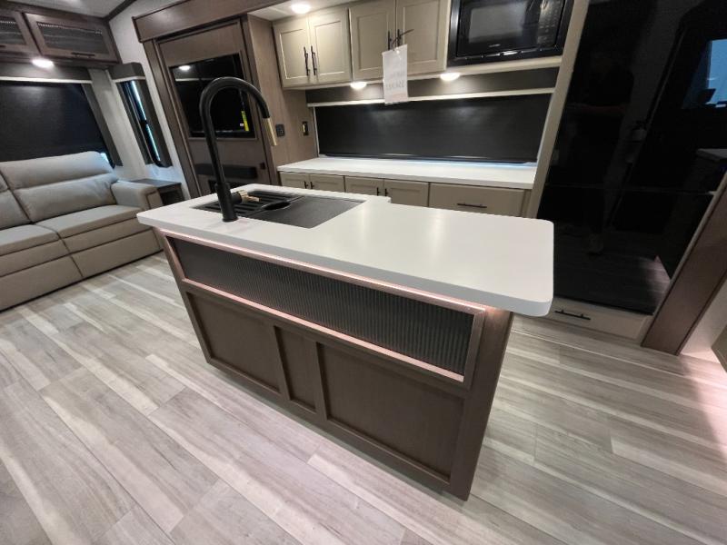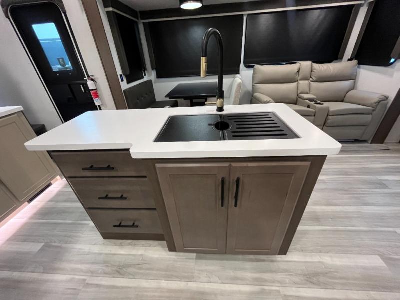 You will have the time of your life in this Cougar Half-Ton fifth wheel! There is so much comfort with the theater seating and tri-fold sleeper sofa with end tables in the living area. You also have lots of space in this area because of the opposing slides, so you can work freely around the kitchen island preparing dinner or washing dishes. The booth dinette is right next to the kitchen, so you won't have to go far to set the table. If you don't need the dinette to double as a bed, then you might be interested in switching it out for the optional free-standing table with chairs and an ottoman. You will also love the gourmet kitchen prep space with ample counter space to make your best meals!