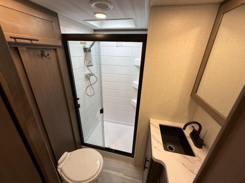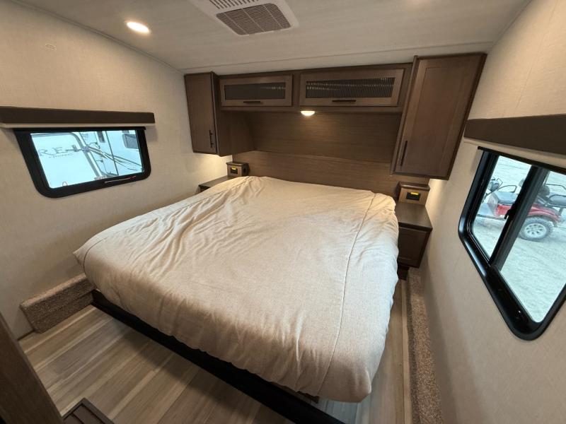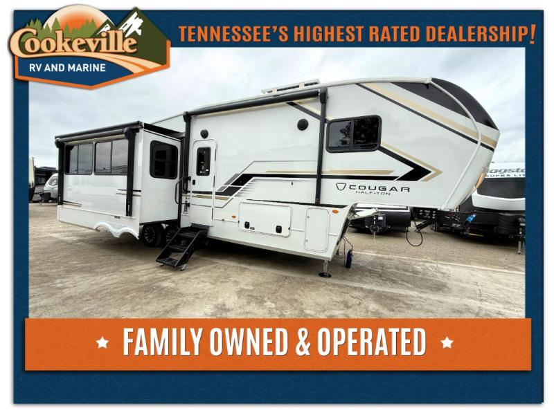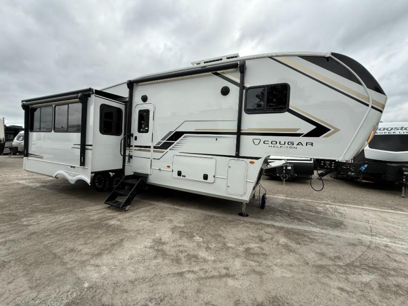 The Keystone Cougar Half-Ton fifth wheel and travel trailers are known as one of America's favorites for a reason! Some of those reasons are the exclusive features that come from Keystone, like the Winegard Air 360+ omni-directional rooftop antenna, the in-floor heating ducts, and the HyperCore composite wall construction with Vixen Fibrogloss high-gloss finish. The Cougar Half-Ton has a Climate Guard protection package with heat-deflecting white sidewalls, two roof attic vents, PEX plumbing and more to enjoy four season camping. Inside, you'll love the dimmable lighting, night roller shades throughout, shower skylight, and bedside USB outlets to keep your electronics charged.