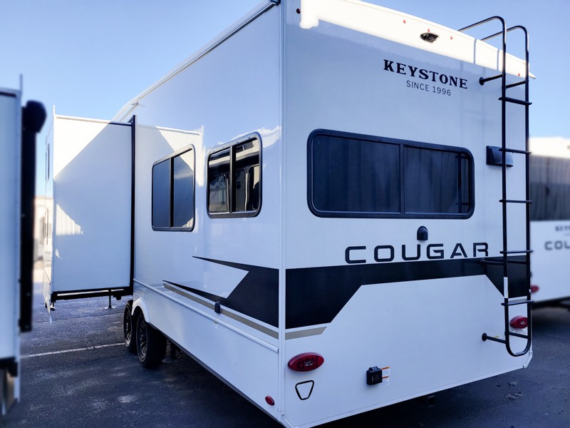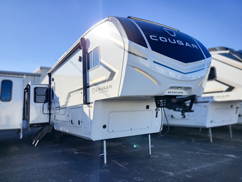 The Keystone Cougar Half-Ton fifth wheel and travel trailers are known as one of America's favorites for a reason! Some of those reasons are the exclusive features that come from Keystone, like the Winegard Air 360+ omni-directional rooftop antenna, the in-floor heating ducts, and the HyperCore composite wall construction with Vixen Fibrogloss high-gloss finish. The Cougar Half-Ton has a Climate Guard protection package with heat-deflecting white sidewalls, two roof attic vents, PEX plumbing and more to enjoy four season camping. Inside, you'll love the dimmable lighting, night roller shades throughout, shower skylight, and bedside USB outlets to keep your electronics charged.