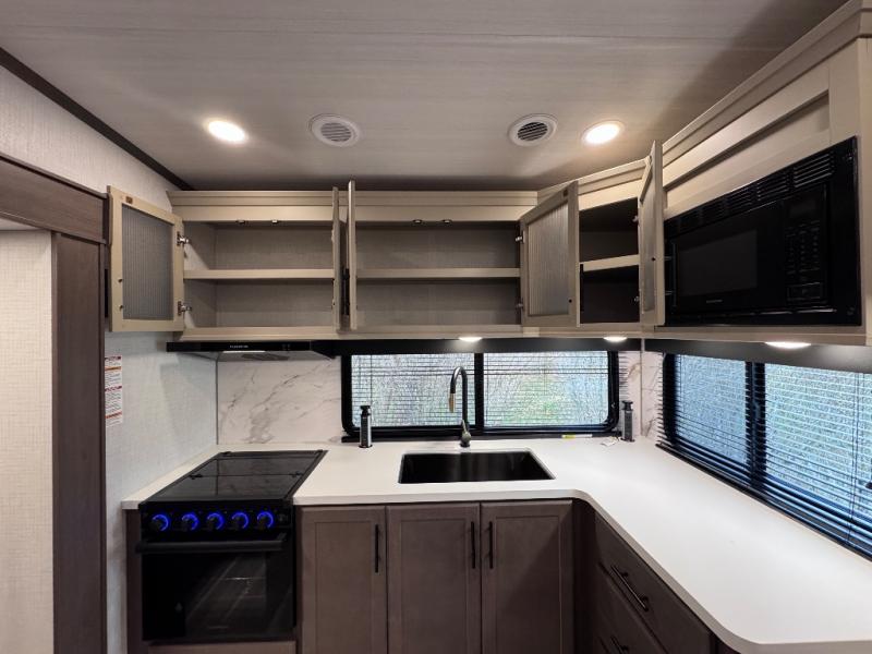 The Keystone Cougar Half-Ton fifth wheel and travel trailers are known as one of America's favorites for a reason! Some of those reasons are the exclusive features that come from Keystone, like the Winegard Air 360+ omni-directional rooftop antenna, the in-floor heating ducts, and the HyperCore composite wall construction with Vixen Fibrogloss high-gloss finish. The Cougar Half-Ton has a Climate Guard protection package with heat-deflecting white sidewalls, two roof attic vents, PEX plumbing and more to enjoy four season camping. Inside, you'll love the dimmable lighting, night roller shades throughout, shower skylight, and bedside USB outlets to keep your electronics charged.