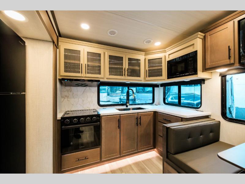 The Keystone Cougar Half-Ton fifth wheel and travel trailers are known as one of America's favorites for a reason! Some of those reasons are the exclusive features that come from Keystone, like the Winegard Air 360+ omni-directional rooftop antenna, the in-floor heating ducts, and the HyperCore composite wall construction with Vixen Fibrogloss high-gloss finish. The Cougar Half-Ton has a Climate Guard protection package with heat-deflecting white sidewalls, two roof attic vents, PEX plumbing and more to enjoy four season camping. Inside, you'll love the dimmable lighting, night roller shades throughout, shower skylight, and bedside USB outlets to keep your electronics charged.