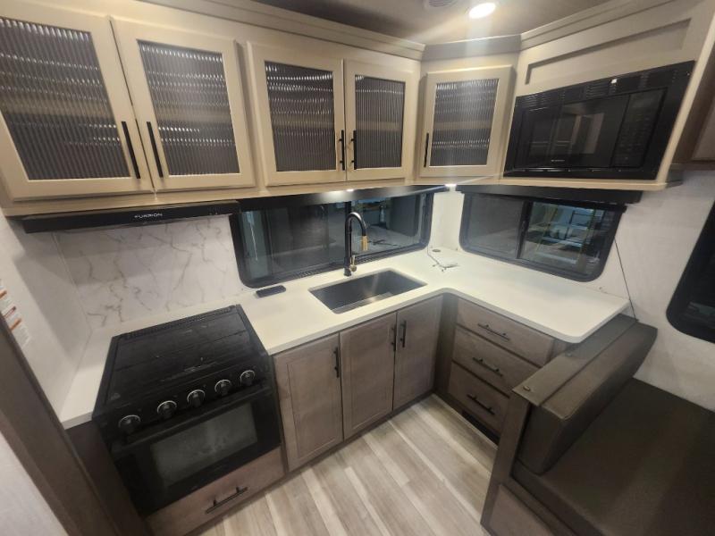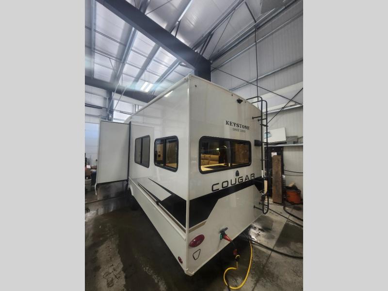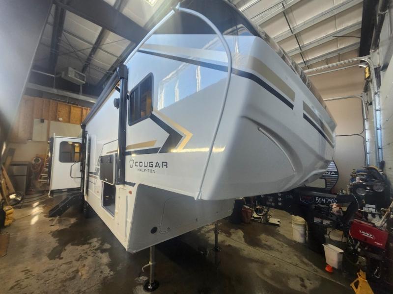 The Keystone Cougar Half-Ton fifth wheel and travel trailers are known as one of America's favorites for a reason! Some of those reasons are the exclusive features that come from Keystone, like the Winegard Air 360+ omni-directional rooftop antenna, the in-floor heating ducts, and the HyperCore composite wall construction with Vixen Fibrogloss high-gloss finish. The Cougar Half-Ton has a Climate Guard protection package with heat-deflecting white sidewalls, two roof attic vents, PEX plumbing and more to enjoy four season camping. Inside, you'll love the dimmable lighting, night roller shades throughout, shower skylight, and bedside USB outlets to keep your electronics charged.