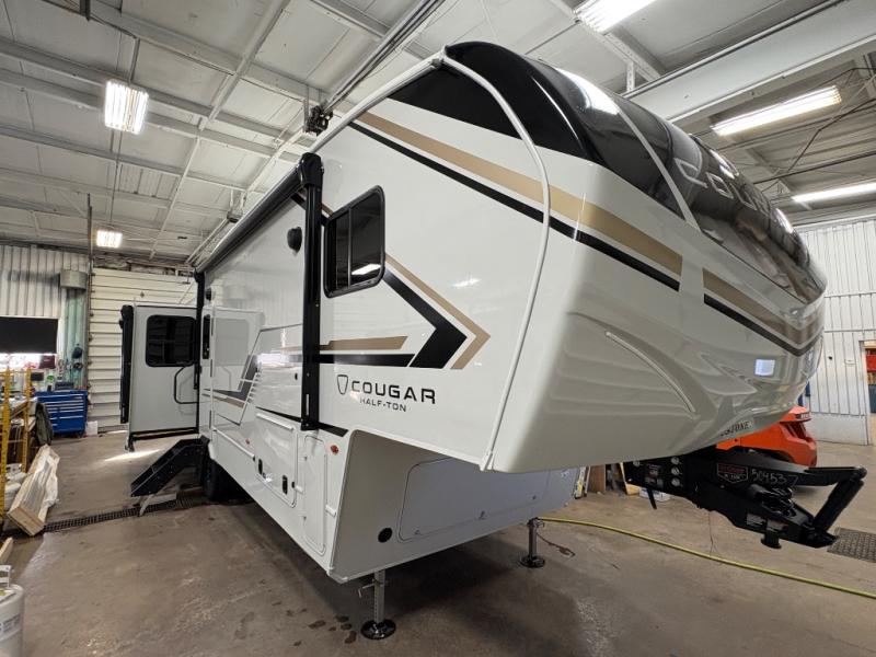 The Keystone Cougar Half-Ton fifth wheel and travel trailers are known as one of America's favorites for a reason! Some of those reasons are the exclusive features that come from Keystone, like the Winegard Air 360+ omni-directional rooftop antenna, the in-floor heating ducts, and the HyperCore composite wall construction with Vixen Fibrogloss high-gloss finish. The Cougar Half-Ton has a Climate Guard protection package with heat-deflecting white sidewalls, two roof attic vents, PEX plumbing and more to enjoy four season camping. Inside, you'll love the dimmable lighting, night roller shades throughout, shower skylight, and bedside USB outlets to keep your electronics charged.