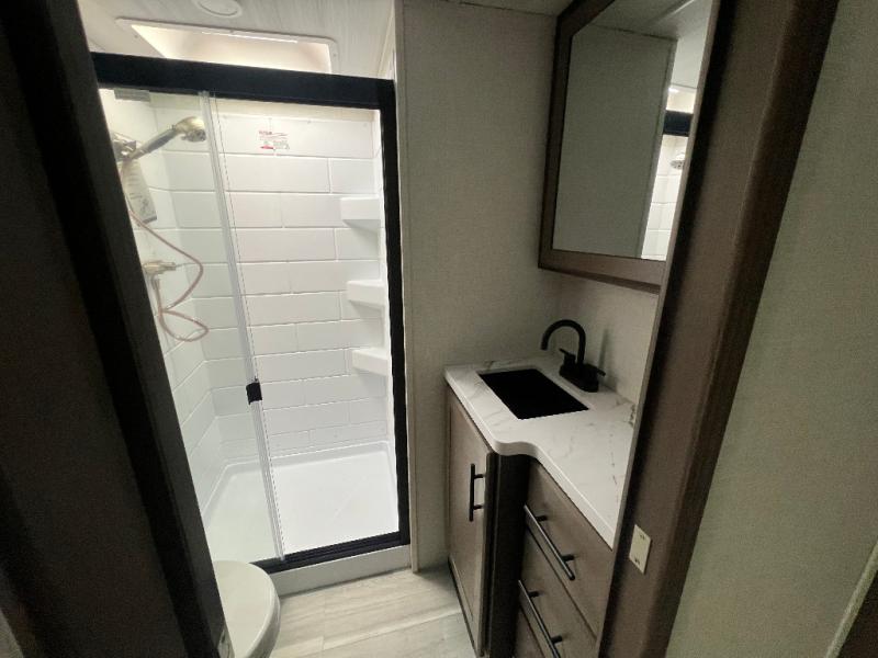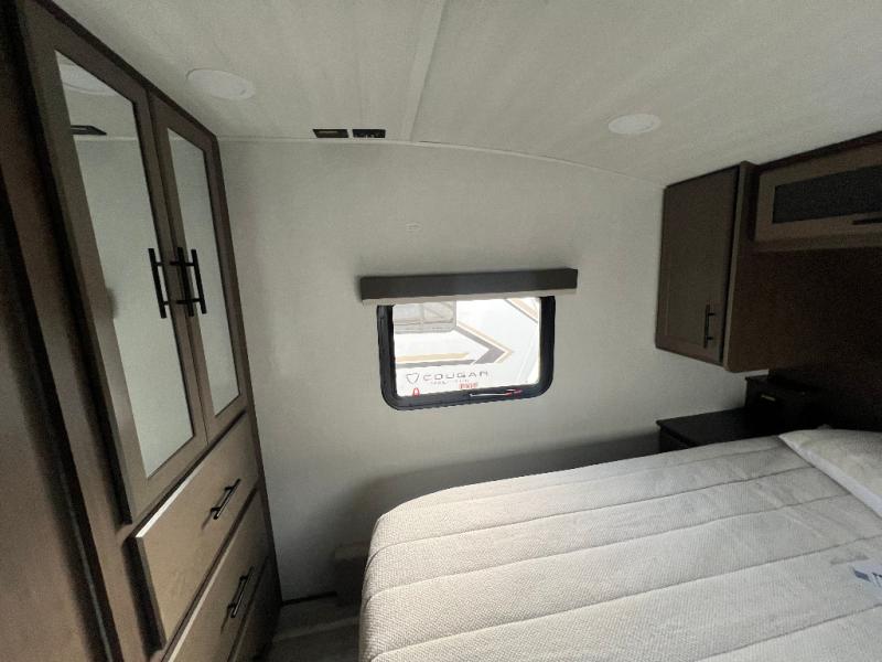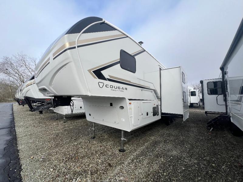 The Keystone Cougar Half-Ton fifth wheel and travel trailers are known as one of America's favorites for a reason! Some of those reasons are the exclusive features that come from Keystone, like the Winegard Air 360+ omni-directional rooftop antenna, the in-floor heating ducts, and the HyperCore composite wall construction with Vixen Fibrogloss high-gloss finish. The Cougar Half-Ton has a Climate Guard protection package with heat-deflecting white sidewalls, two roof attic vents, PEX plumbing and more to enjoy four season camping. Inside, you'll love the dimmable lighting, night roller shades throughout, shower skylight, and bedside USB outlets to keep your electronics charged.