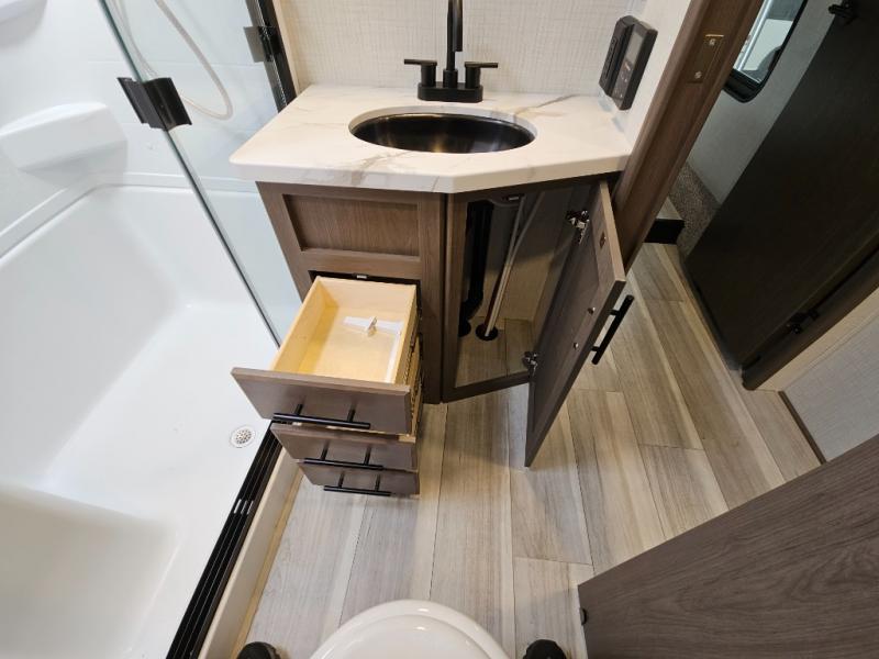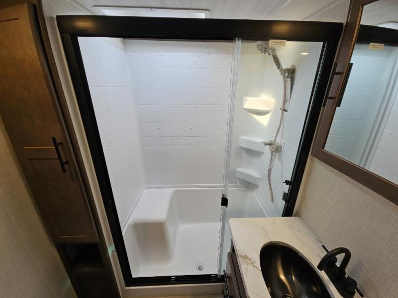 The Keystone Cougar Half-Ton fifth wheel and travel trailers are known as one of America's favorites for a reason! Some of those reasons are the exclusive features that come from Keystone, like the Winegard Air 360+ omni-directional rooftop antenna, the in-floor heating ducts, and the HyperCore composite wall construction with Vixen Fibrogloss high-gloss finish. The Cougar Half-Ton has a Climate Guard protection package with heat-deflecting white sidewalls, two roof attic vents, PEX plumbing and more to enjoy four season camping. Inside, you'll love the dimmable lighting, night roller shades throughout, shower skylight, and bedside USB outlets to keep your electronics charged.