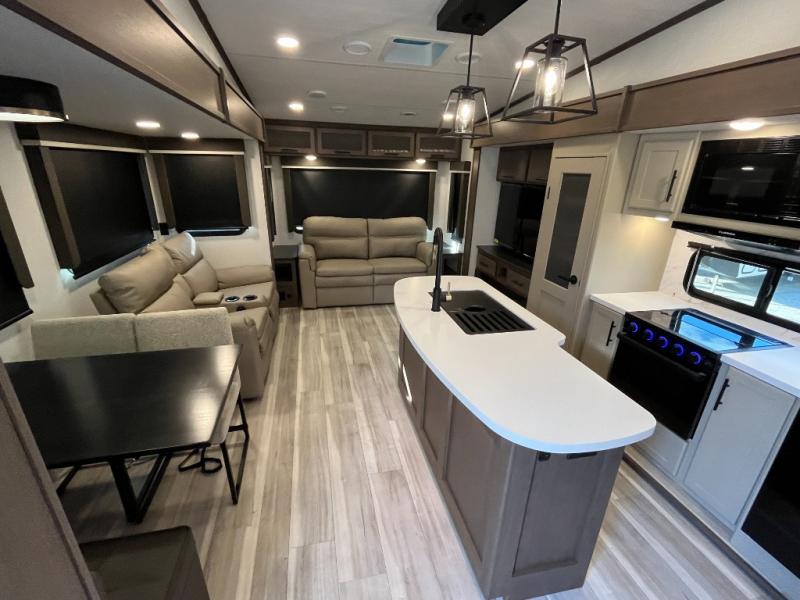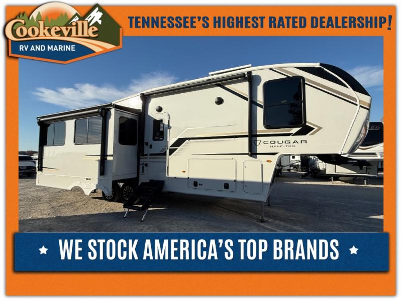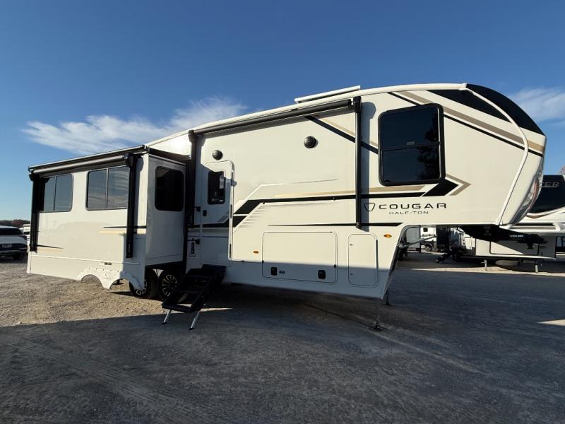 The Keystone Cougar Half-Ton fifth wheel and travel trailers are known as one of America's favorites for a reason! Some of those reasons are the exclusive features that come from Keystone, like the Winegard Air 360+ omni-directional rooftop antenna, the in-floor heating ducts, and the HyperCore composite wall construction with Vixen Fibrogloss high-gloss finish. The Cougar Half-Ton has a Climate Guard protection package with heat-deflecting white sidewalls, two roof attic vents, PEX plumbing and more to enjoy four season camping. Inside, you'll love the dimmable lighting, night roller shades throughout, shower skylight, and bedside USB outlets to keep your electronics charged.