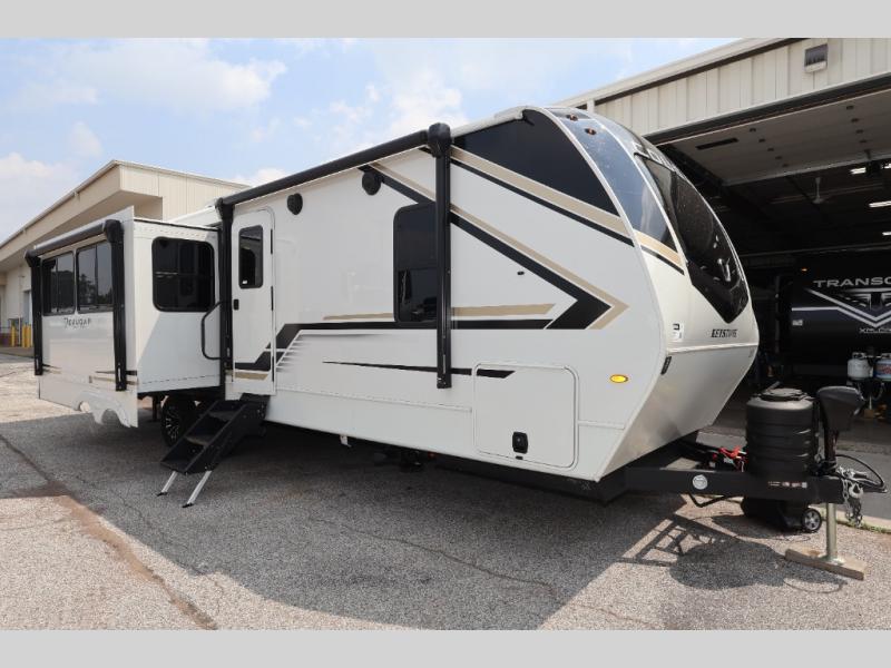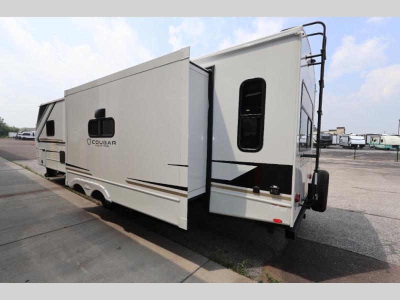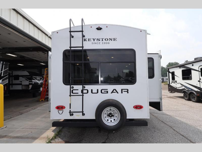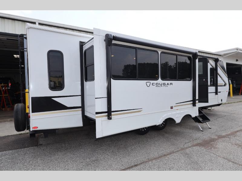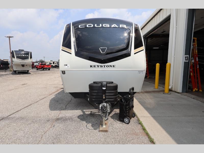 The Keystone Cougar Half-Ton fifth wheel and travel trailers are known as one of America's favorites for a reason! Some of those reasons are the exclusive features that come from Keystone, like the Winegard Air 360+ omni-directional rooftop antenna, the in-floor heating ducts, and the HyperCore composite wall construction with Vixen Fibrogloss high-gloss finish. The Cougar Half-Ton has a Climate Guard protection package with heat-deflecting white sidewalls, two roof attic vents, PEX plumbing and more to enjoy four season camping. Inside, you'll love the dimmable lighting, night roller shades throughout, shower skylight, and bedside USB outlets to keep your electronics charged.