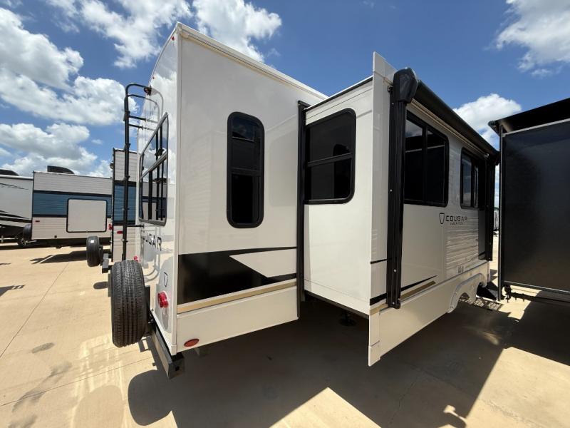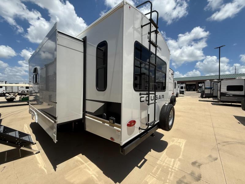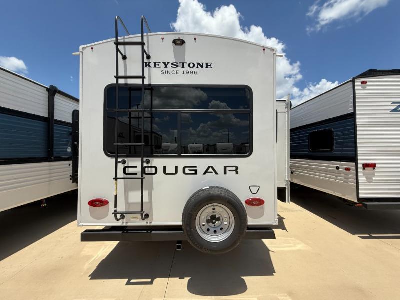 The Keystone Cougar Half-Ton fifth wheel and travel trailers are known as one of America's favorites for a reason! Some of those reasons are the exclusive features that come from Keystone, like the Winegard Air 360+ omni-directional rooftop antenna, the in-floor heating ducts, and the HyperCore composite wall construction with Vixen Fibrogloss high-gloss finish. The Cougar Half-Ton has a Climate Guard protection package with heat-deflecting white sidewalls, two roof attic vents, PEX plumbing and more to enjoy four season camping. Inside, you'll love the dimmable lighting, night roller shades throughout, shower skylight, and bedside USB outlets to keep your electronics charged.