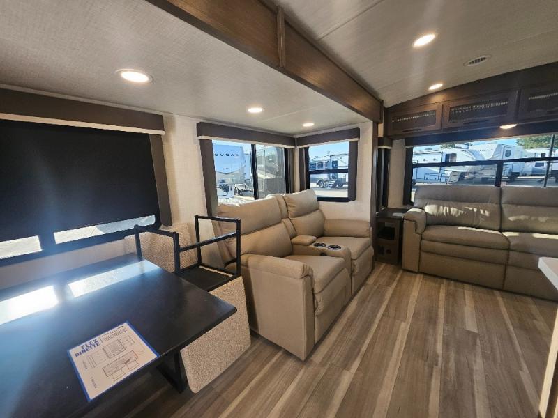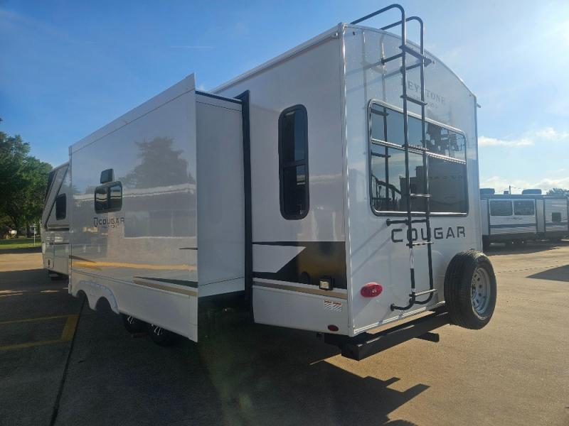 The Keystone Cougar Half-Ton fifth wheel and travel trailers are known as one of America's favorites for a reason! Some of those reasons are the exclusive features that come from Keystone, like the Winegard Air 360+ omni-directional rooftop antenna, the in-floor heating ducts, and the HyperCore composite wall construction with Vixen Fibrogloss high-gloss finish. The Cougar Half-Ton has a Climate Guard protection package with heat-deflecting white sidewalls, two roof attic vents, PEX plumbing and more to enjoy four season camping. Inside, you'll love the dimmable lighting, night roller shades throughout, shower skylight, and bedside USB outlets to keep your electronics charged.