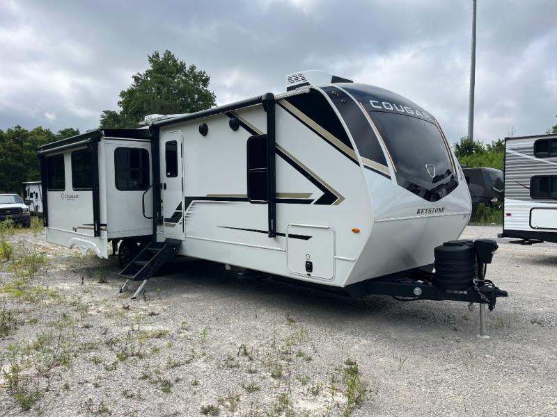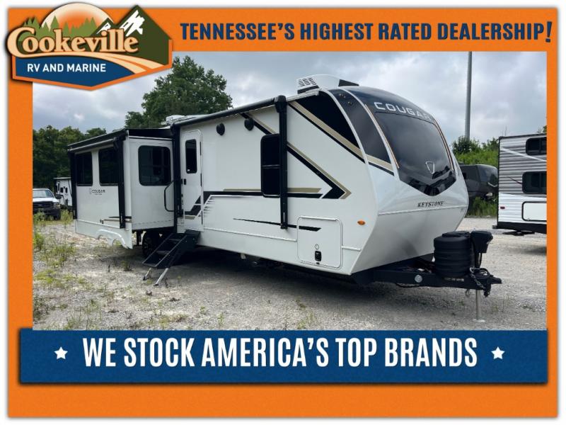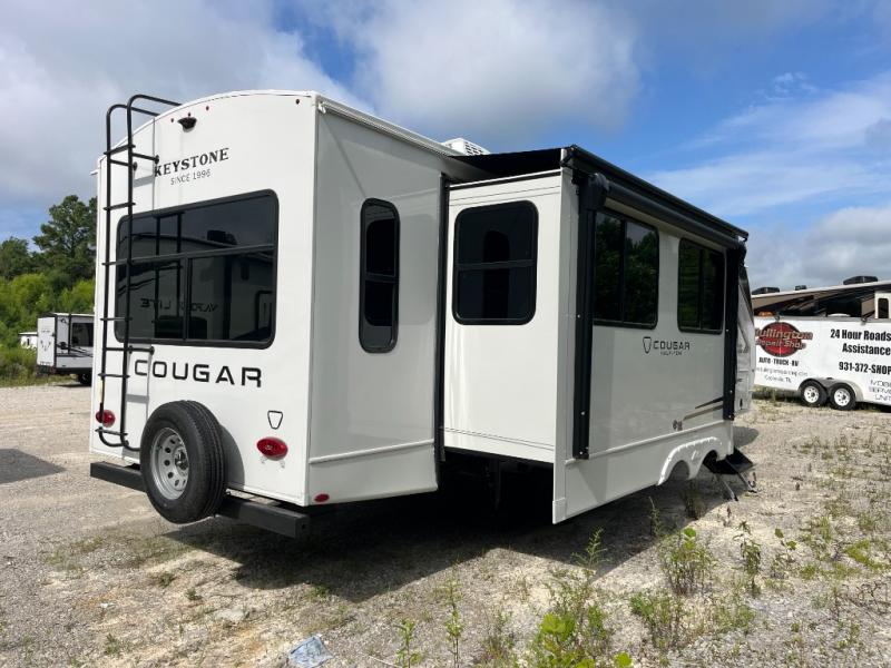 The Keystone Cougar Half-Ton fifth wheel and travel trailers are known as one of America's favorites for a reason! Some of those reasons are the exclusive features that come from Keystone, like the Winegard Air 360+ omni-directional rooftop antenna, the in-floor heating ducts, and the HyperCore composite wall construction with Vixen Fibrogloss high-gloss finish. The Cougar Half-Ton has a Climate Guard protection package with heat-deflecting white sidewalls, two roof attic vents, PEX plumbing and more to enjoy four season camping. Inside, you'll love the dimmable lighting, night roller shades throughout, shower skylight, and bedside USB outlets to keep your electronics charged.